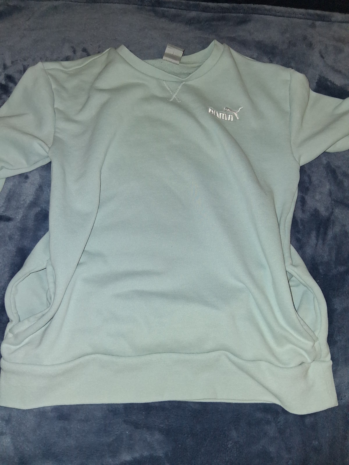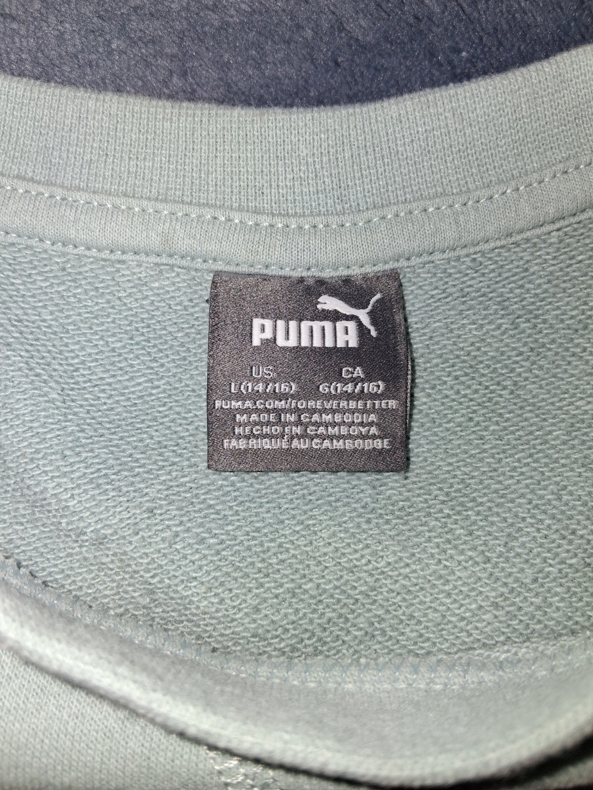 PUMA Light Green Sweatshirt Cotton Crew Neck Long Sleeve Size L 14/15