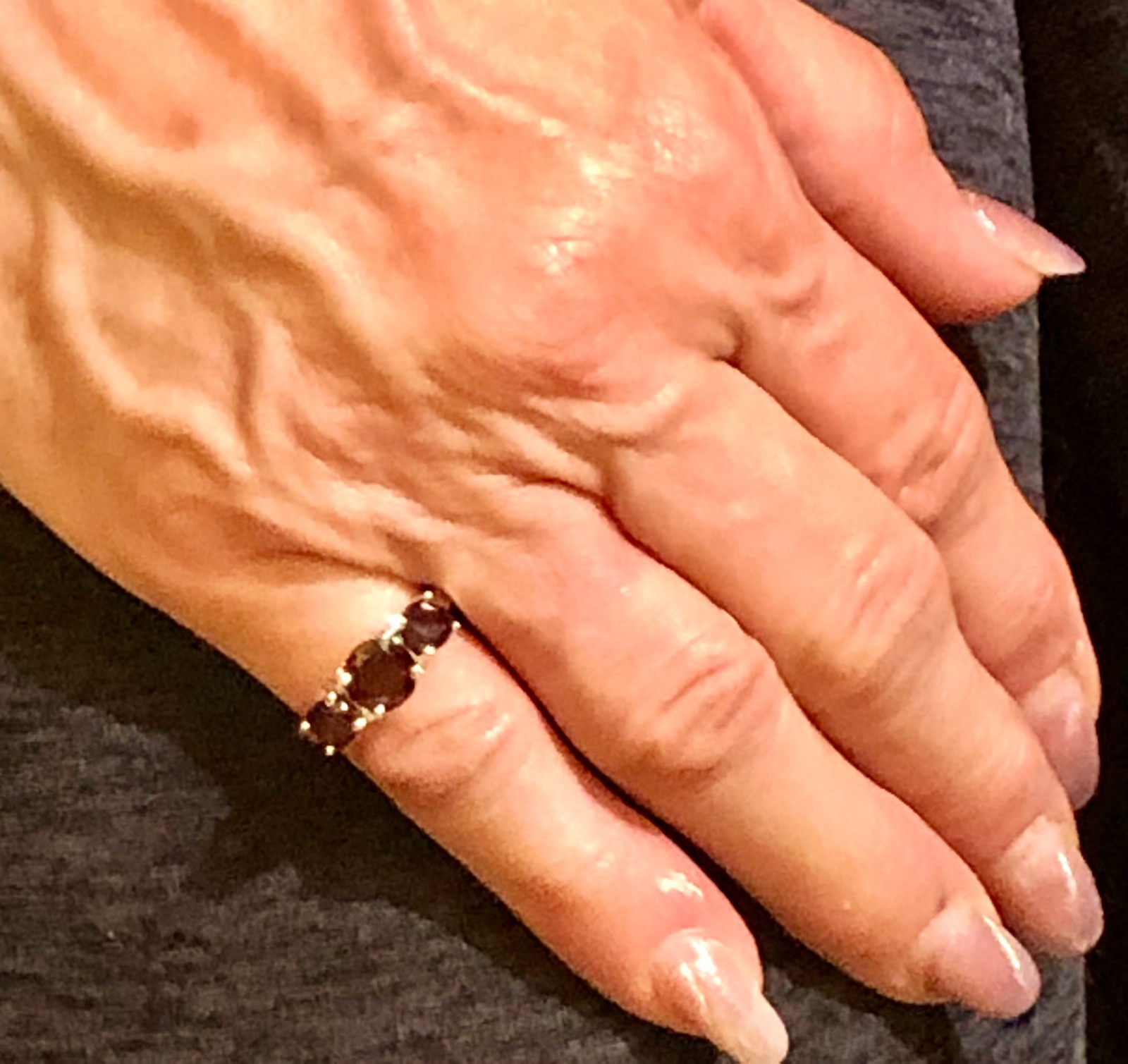 Sterling GARNET Three Gemstone Ring Size 8 Beautiful Classic 925