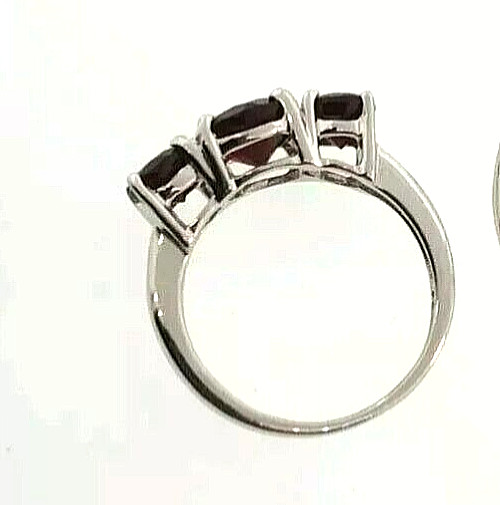 как выглядит Sterling GARNET Three Gemstone Ring Size 8 Beautiful Classic 925 фото