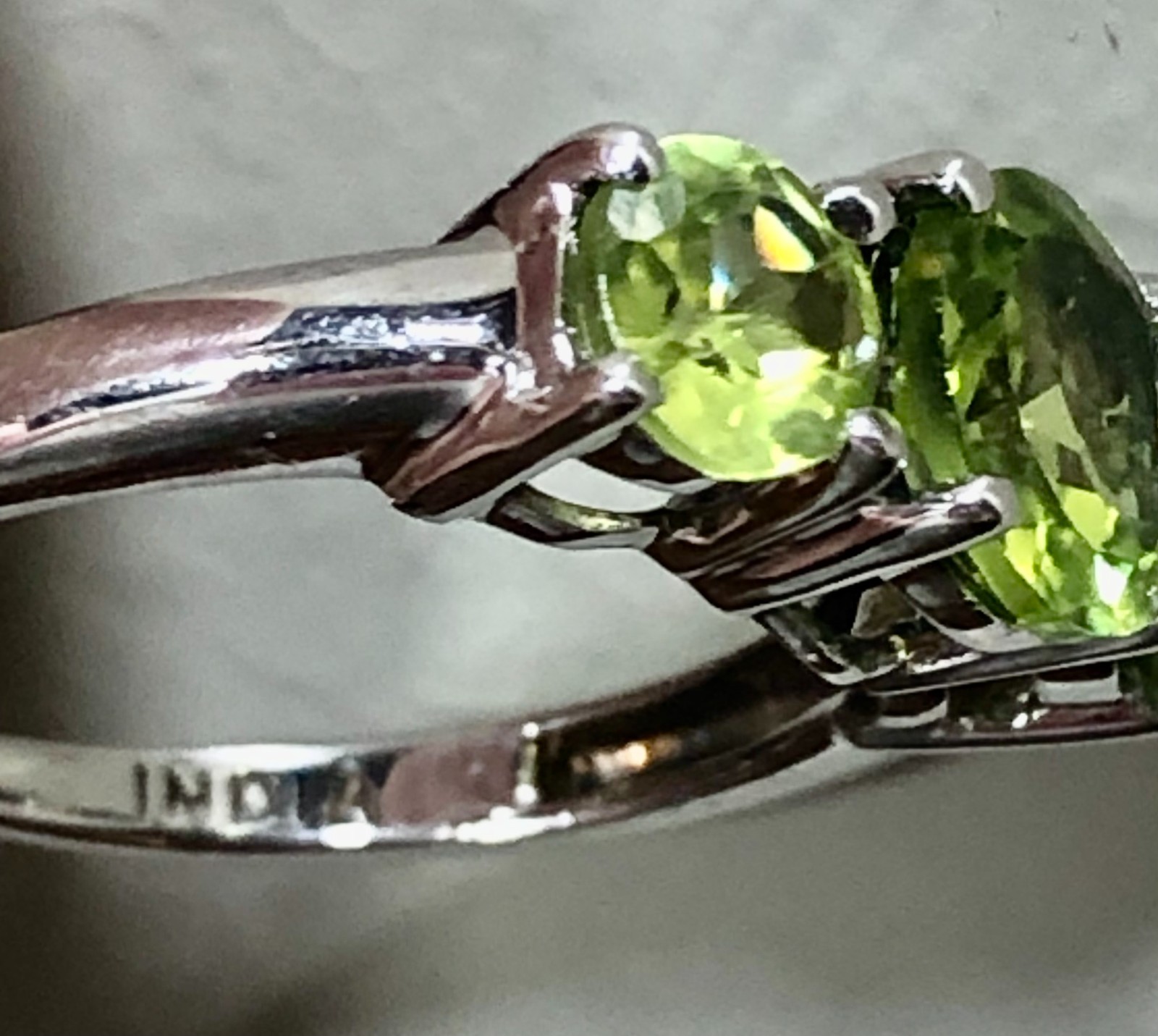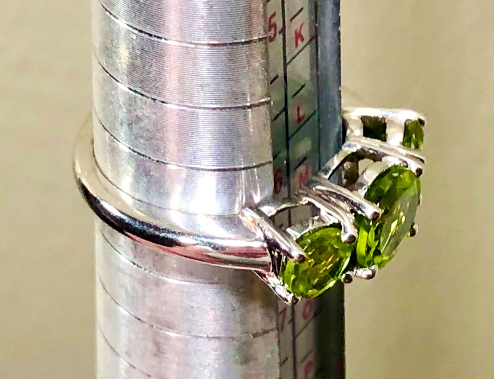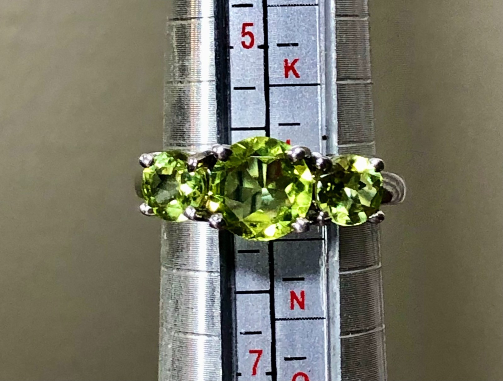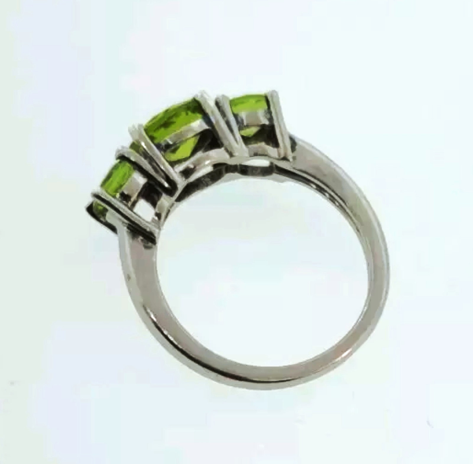 как выглядит Sterling PERIDOT Three Gemstone Ring Size 6 Beautiful Classic 925 фото