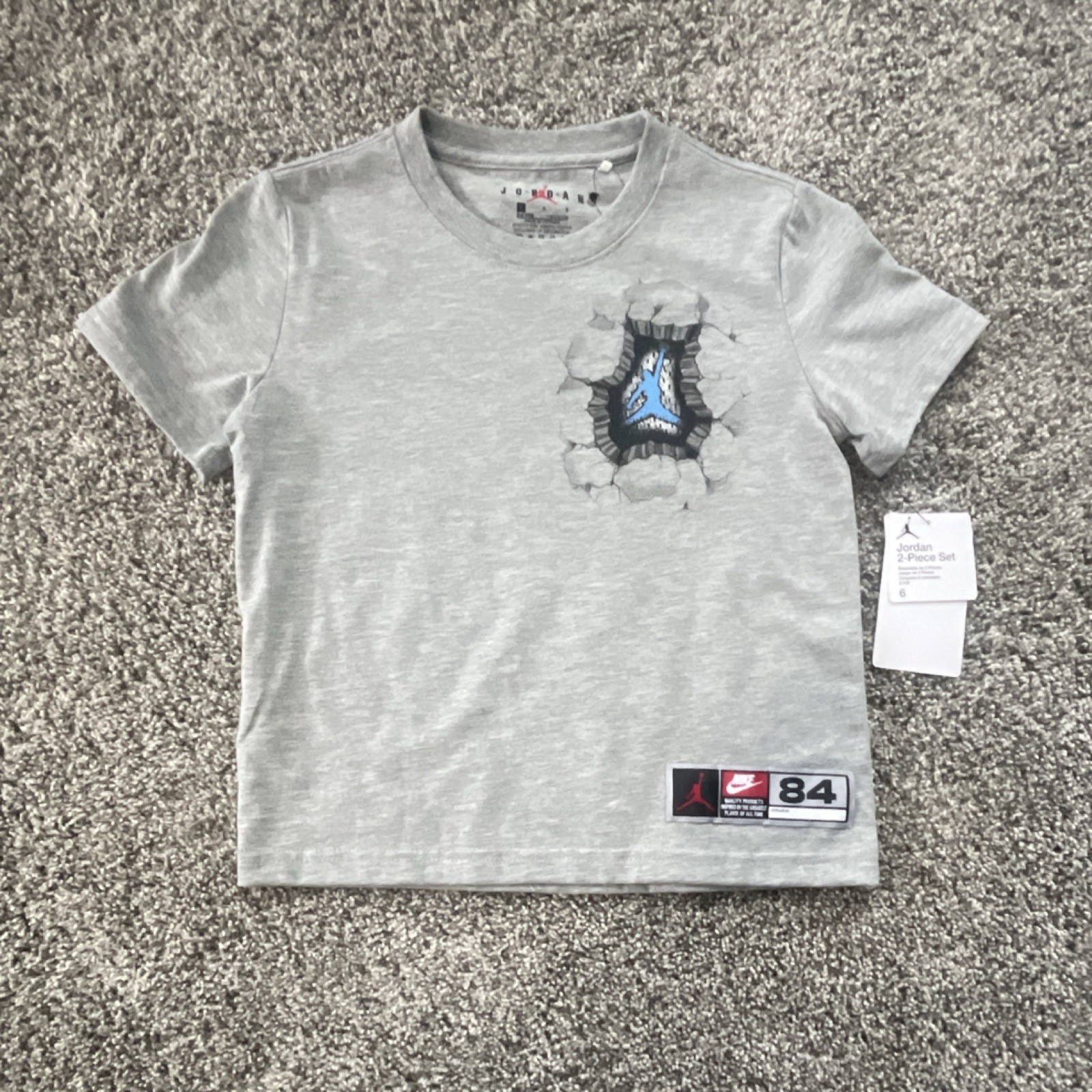 NWT. JORDAN LIGHT BLUE AND GRAY 2-PIECE T-SHIRT AND SHORTS SET. SIZE 6. BOYS.