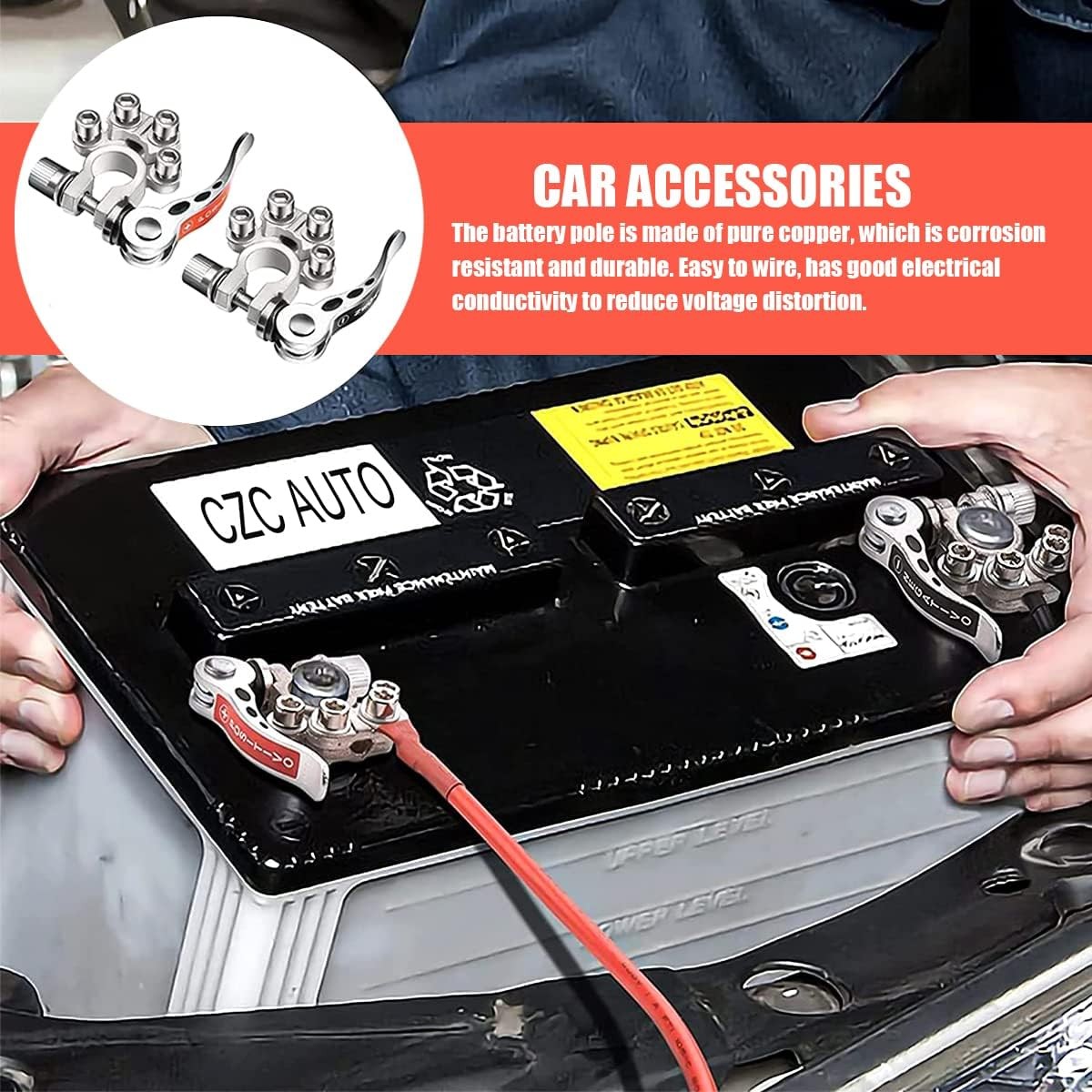 2Pcs Car Battery Terminals 4-Way Quick Release Positive Negative for Cars, Van