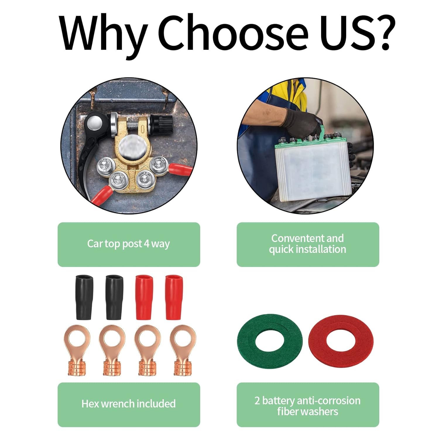 2Pcs Car Battery Terminals Top Post 4-Way Quick Release Positive Negative Clam