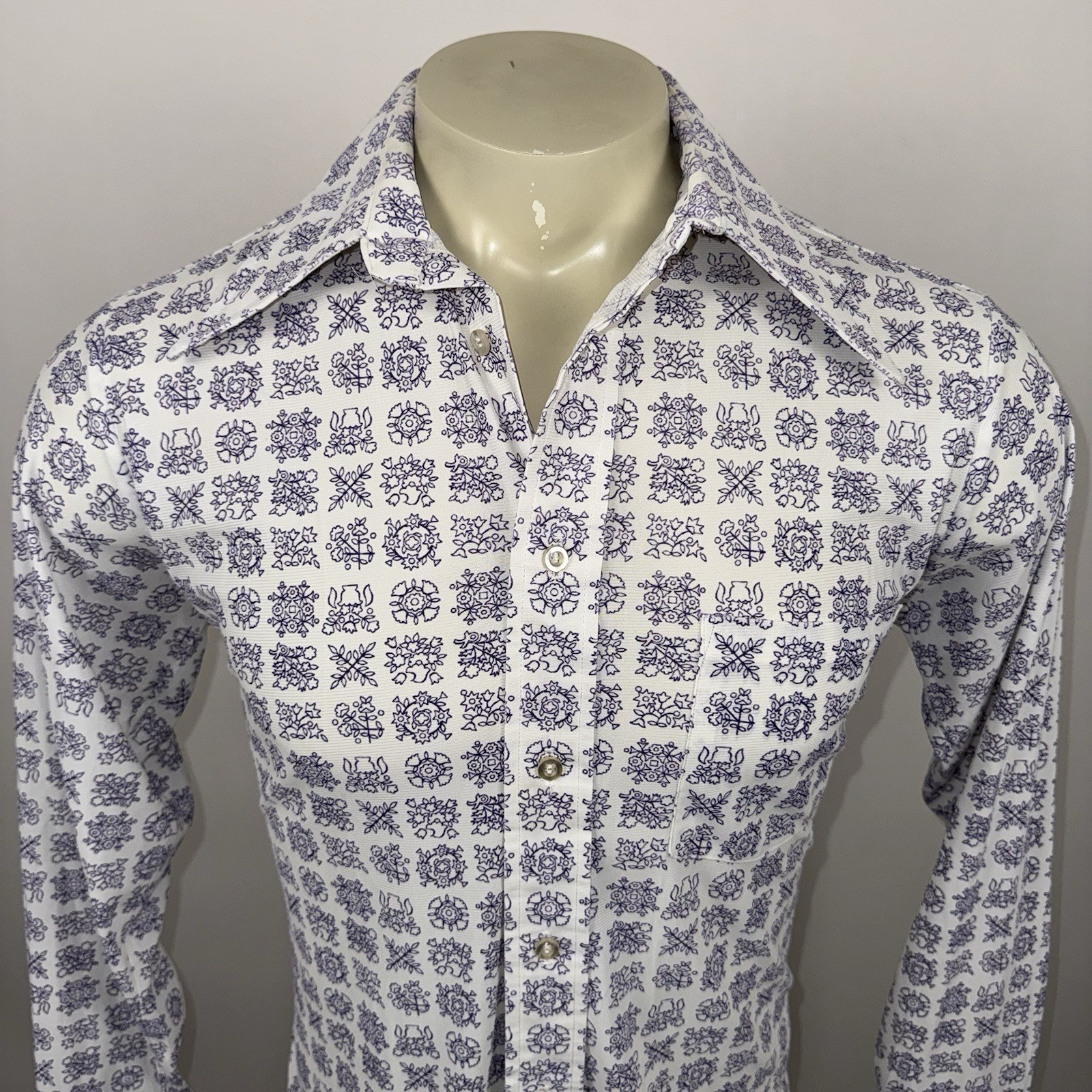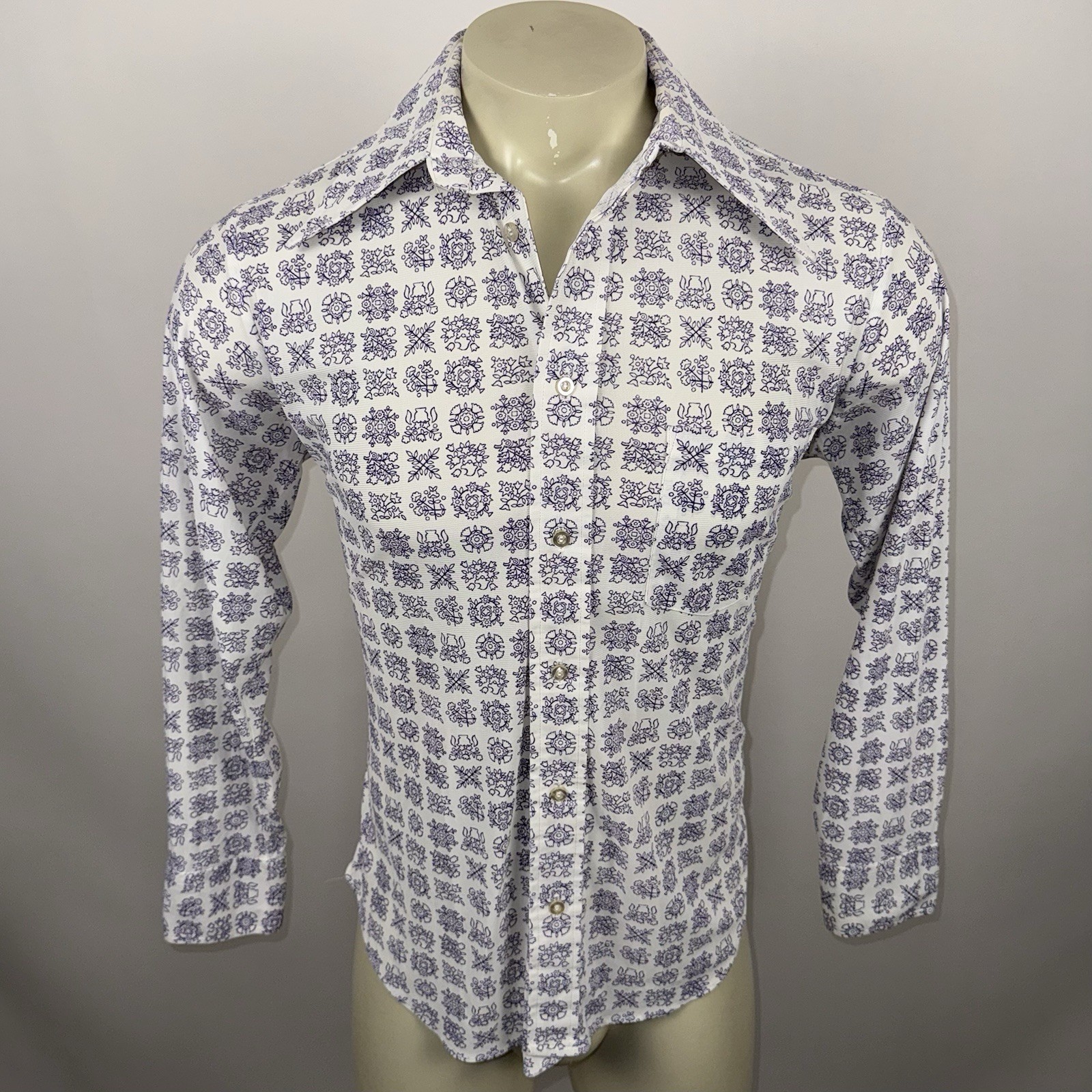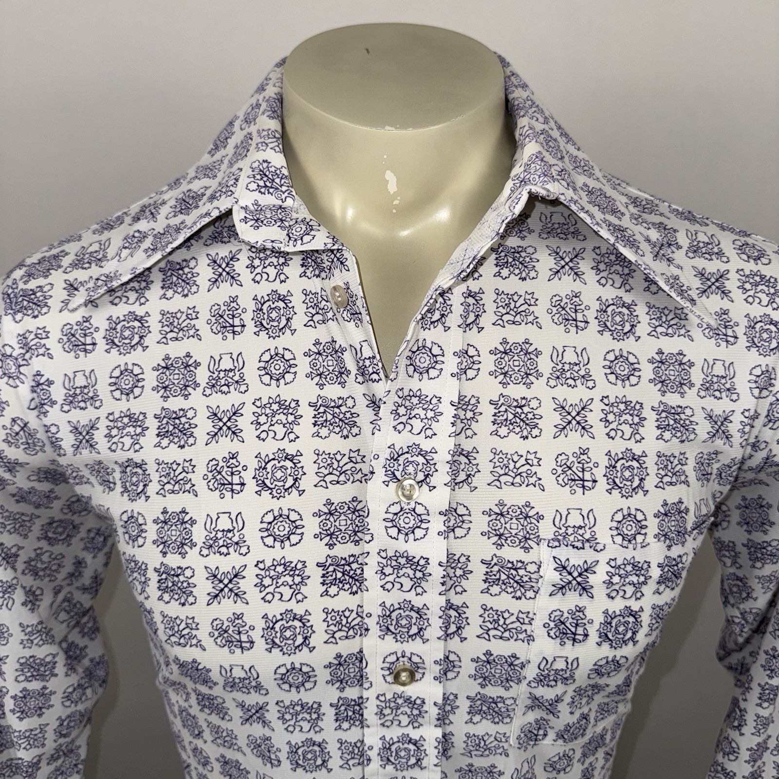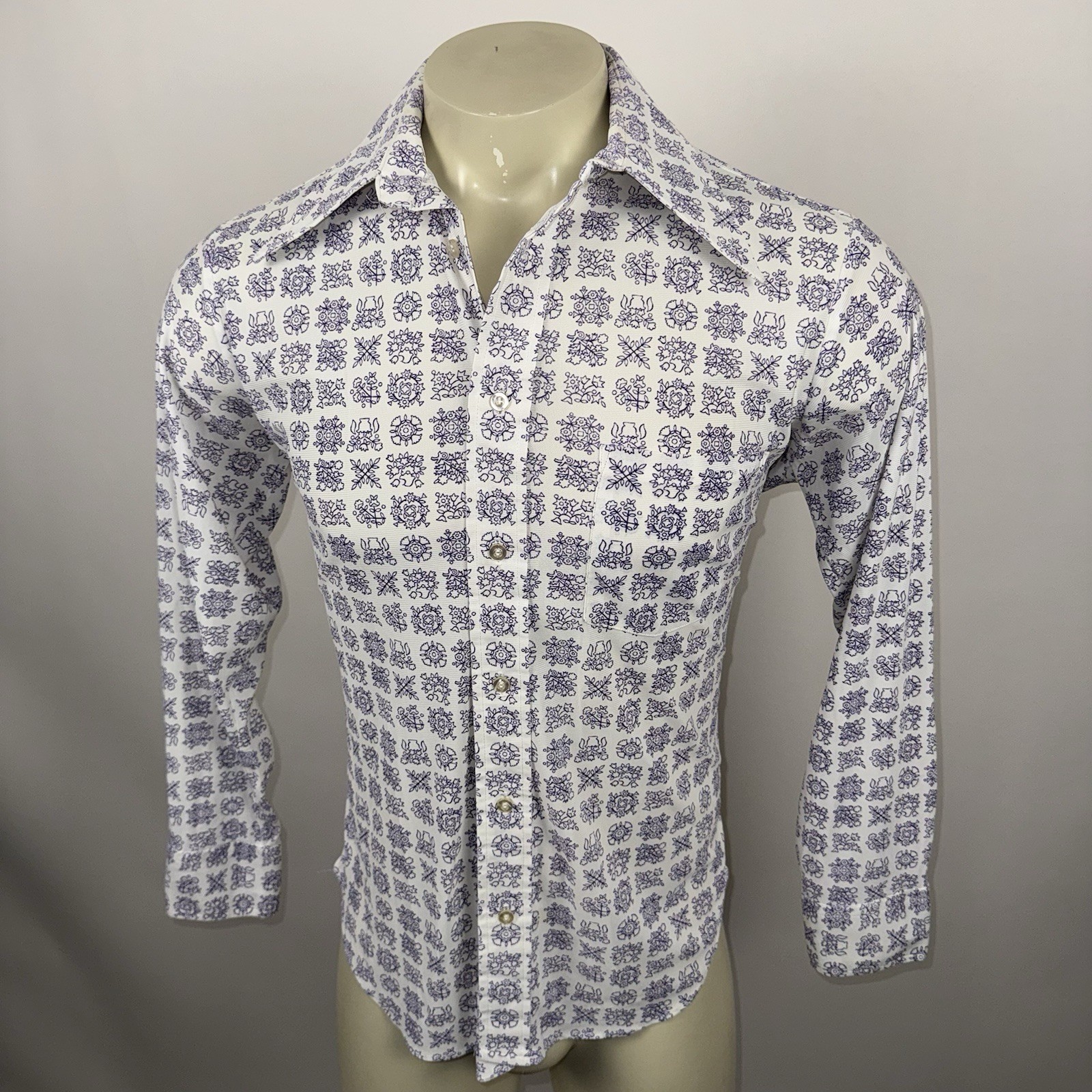 Vtg 60s 70s Towncraft Shirt Geometric Disco Club Soul Train Medium Mens 15.5 33