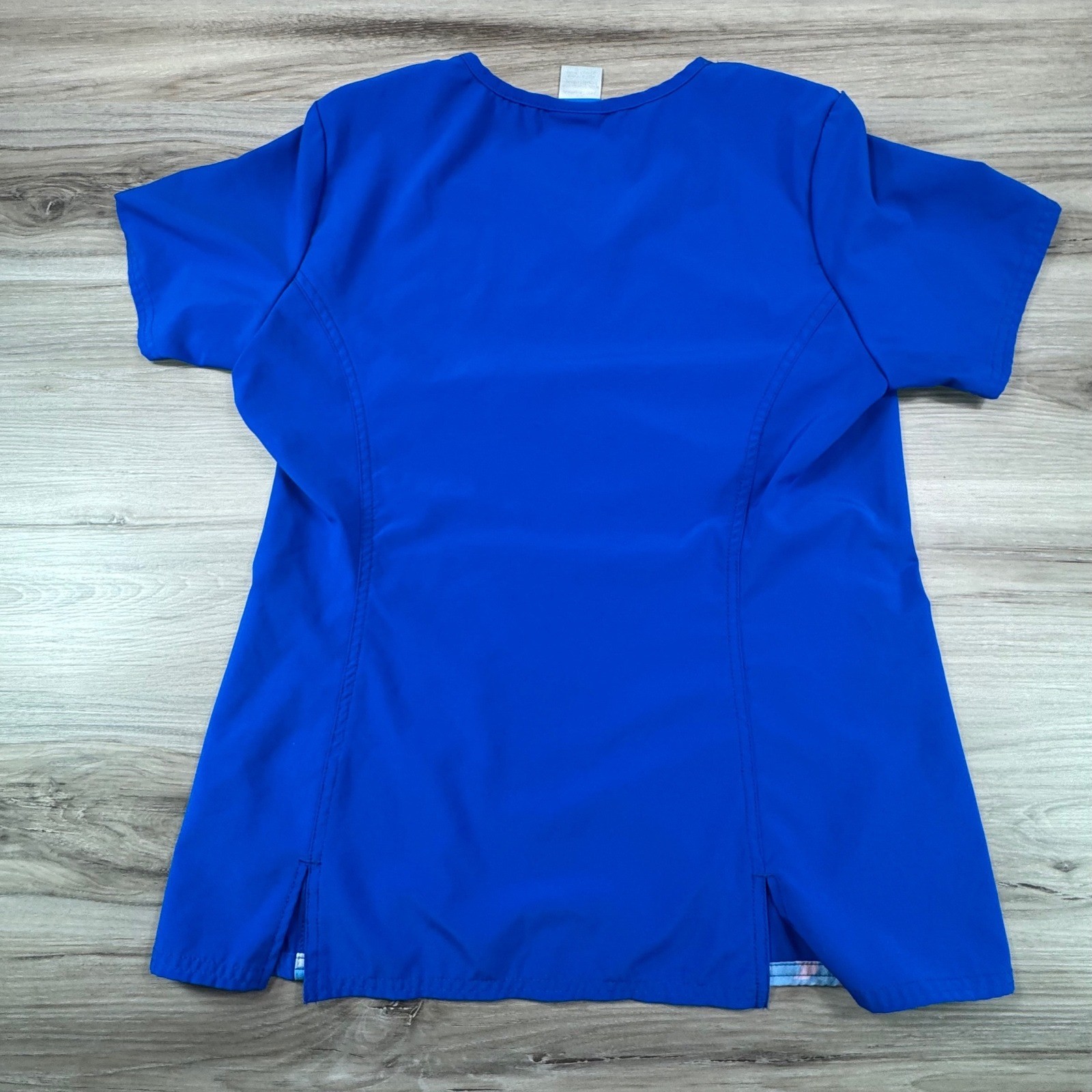 Frosty the Snowman Womens V-Neck Scrub Top Blue Christmas Holiday