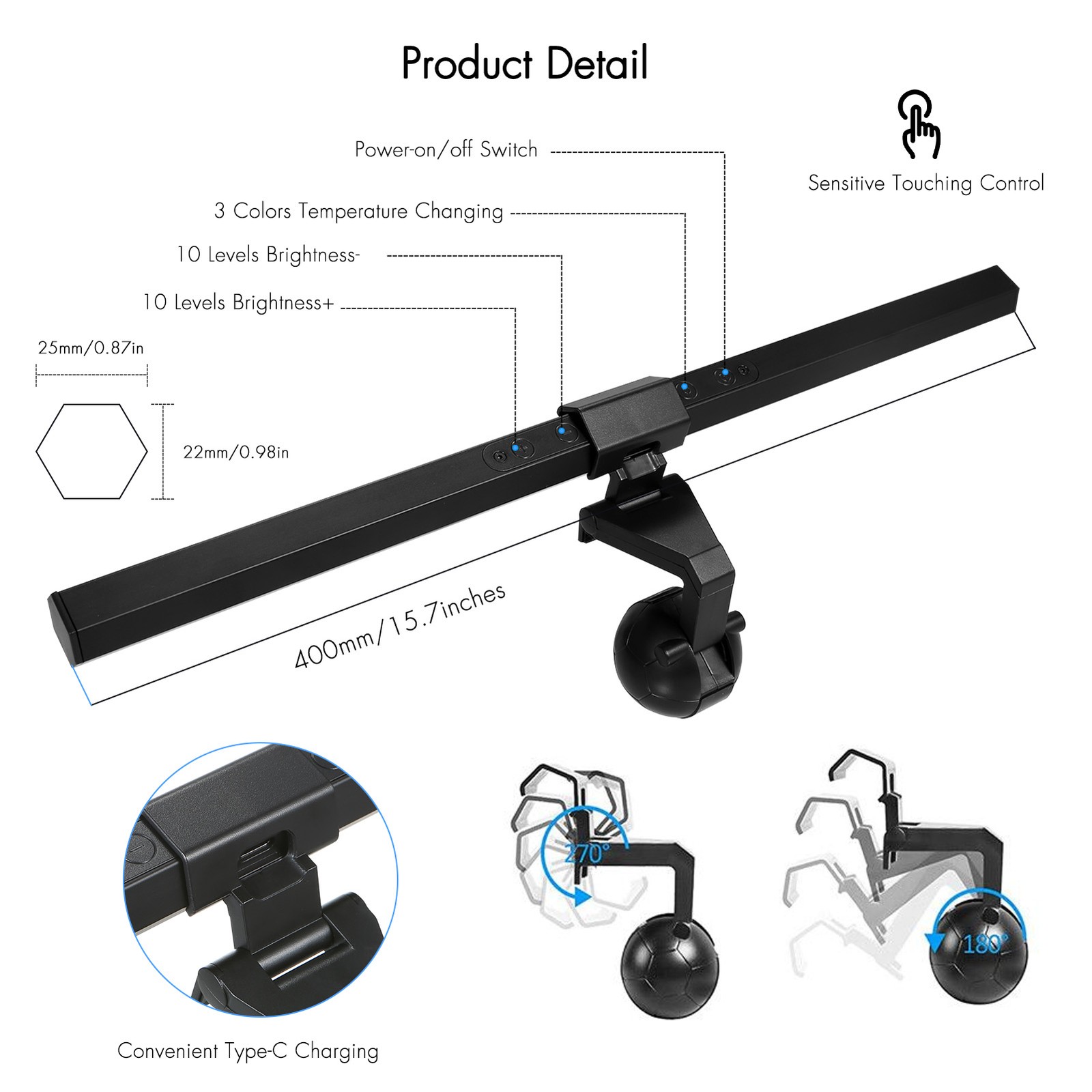 Dimmable 84LEDs Screen Bar Light Computer Monitor Eye-Caring Reading Desk Lamp