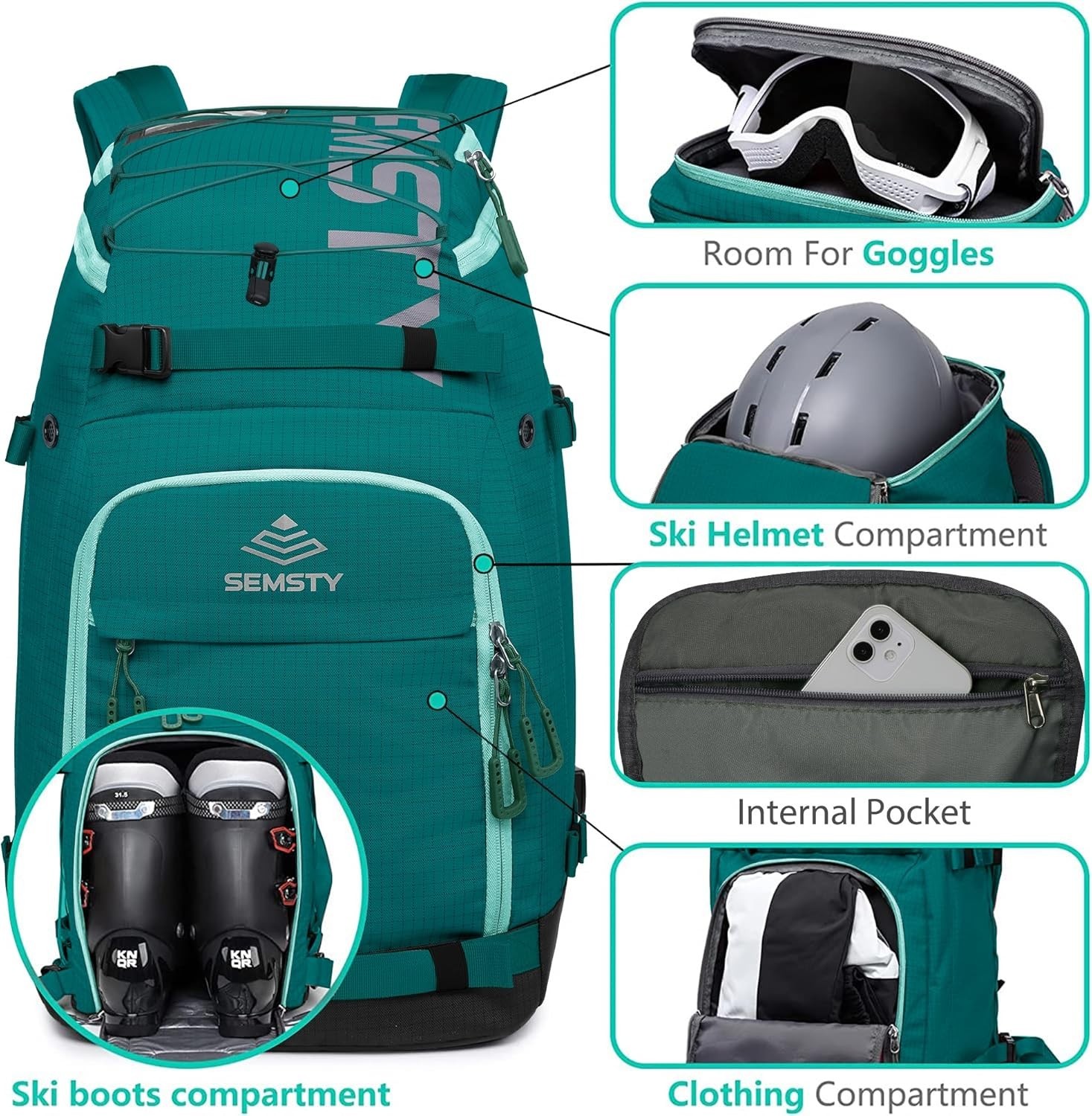 как выглядит Ski Boot Bag, 55L Waterproof Ski and Snowboard Boots Travel Backpack for Skis... фото