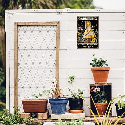 Funny Gardening Because Murder Is Wrong Metal Sign: Women's Garden Gift 05