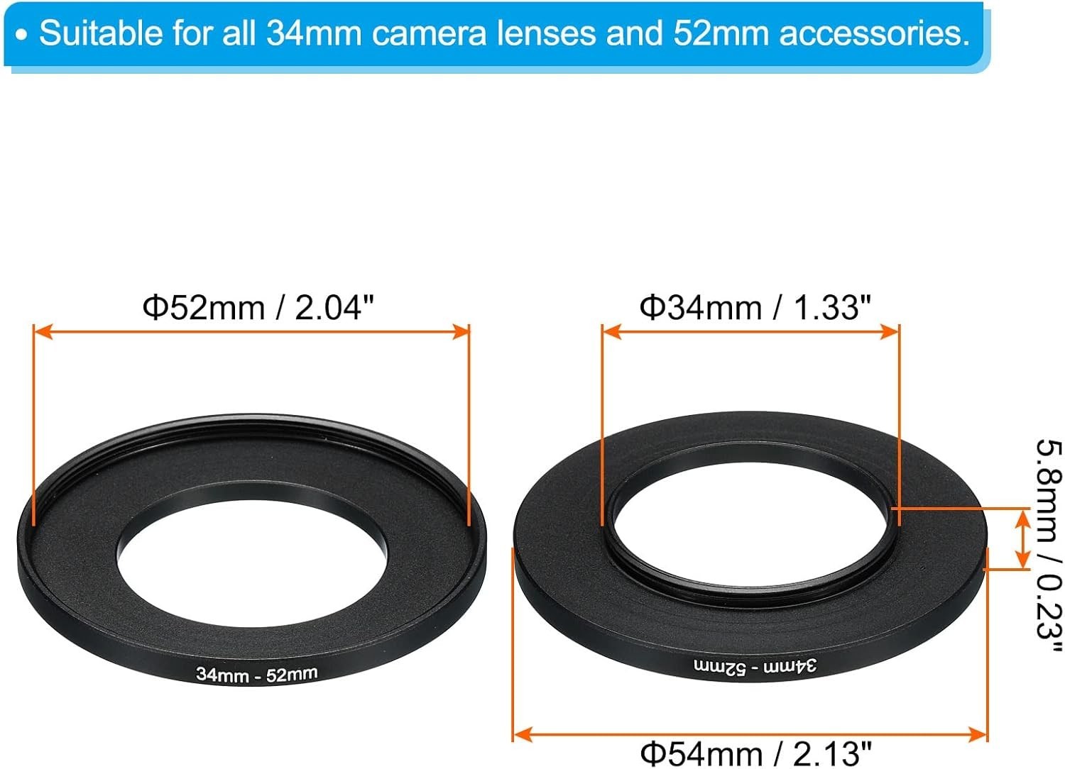 34mm-52mm Metal Step Up Ring, Camera Lens Filter Adapter Ring Aluminum Filter...