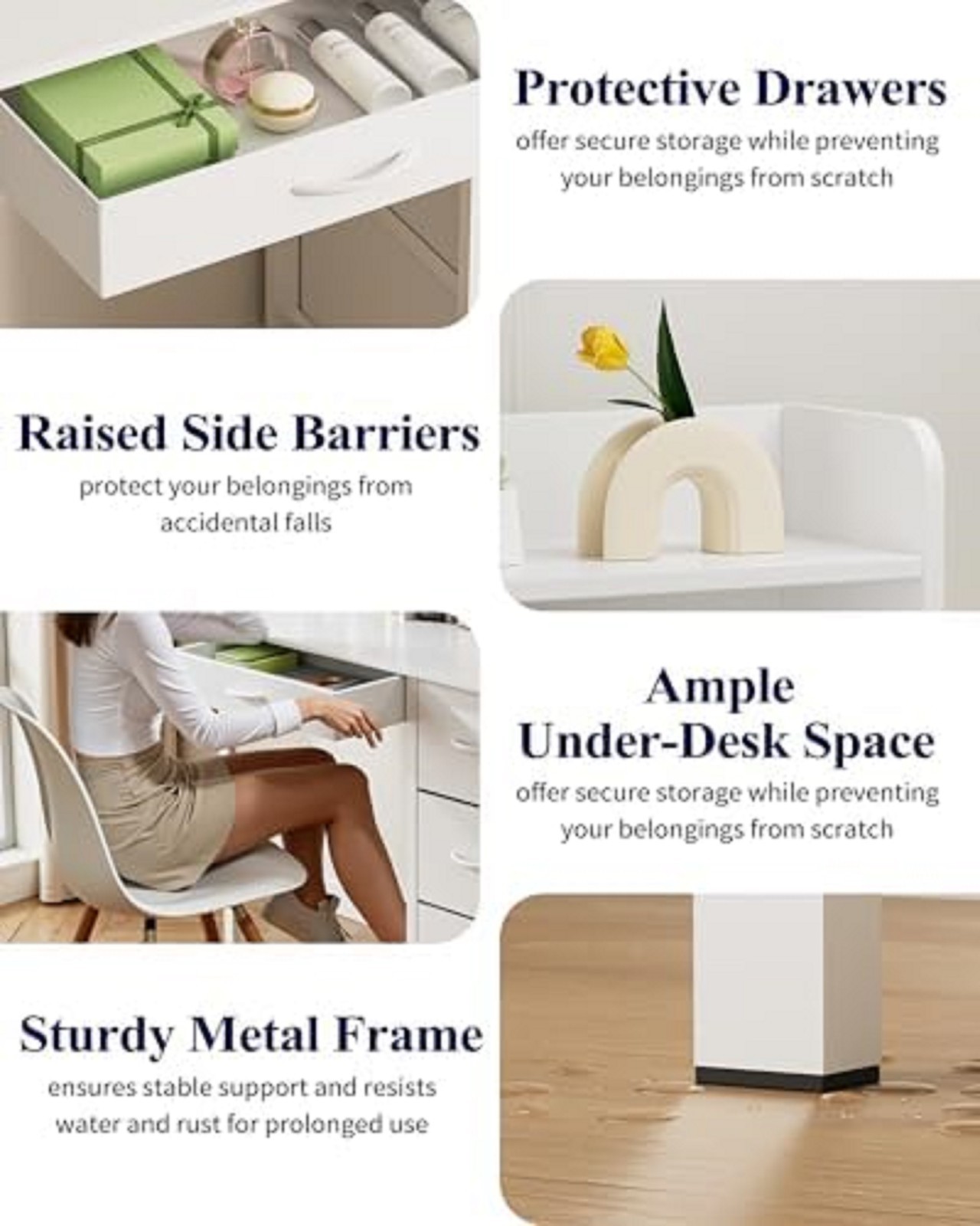 Vanity Desk with Mirror and Lights - Large Capacity Makeup Vanity with 4 Fabric