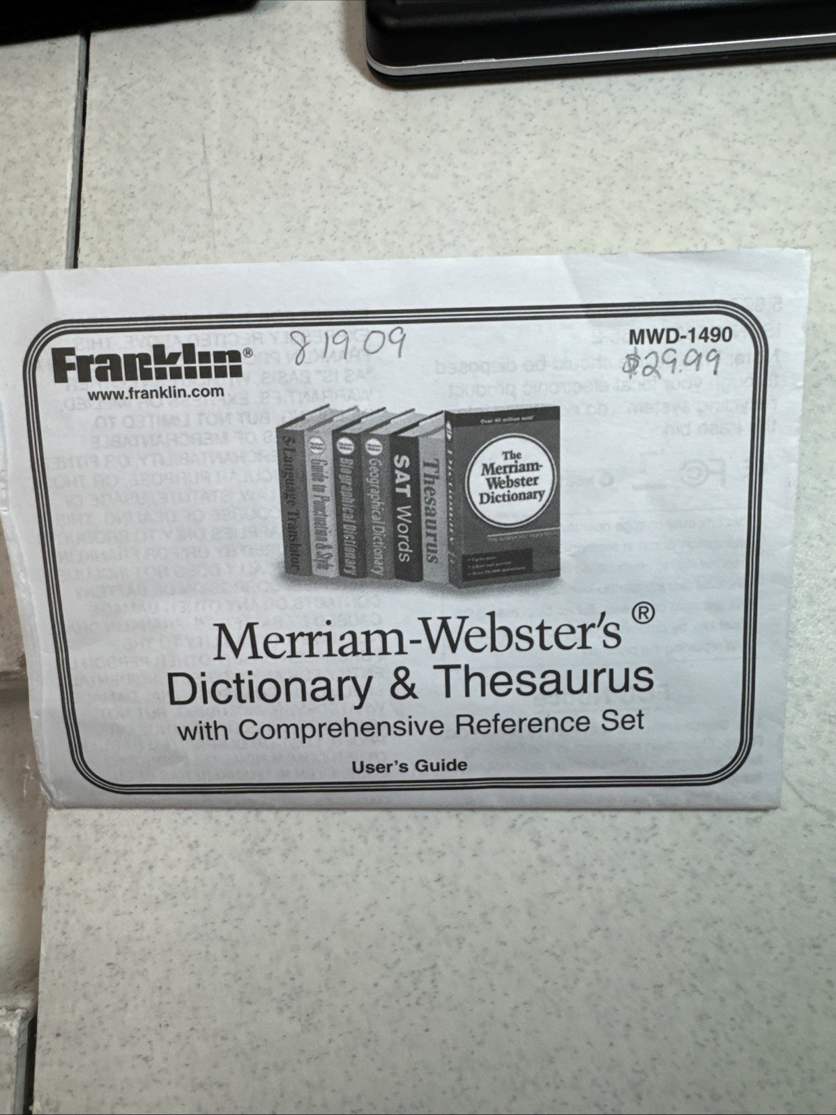 как выглядит Franklin MWD-1490 Merriam Webster Electronic Dictionary w/New Batteries фото