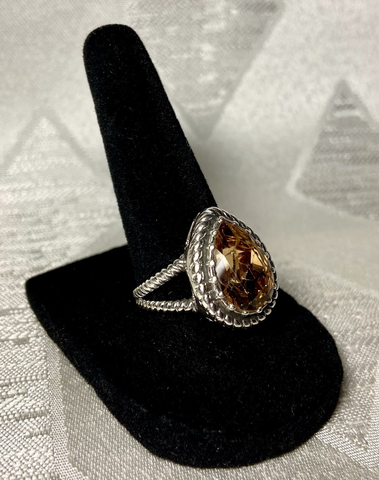 как выглядит Vintage 925 Sterling Silver Ornate Pear Cut Golden Citrine Estate Ring Size 7.25 фото