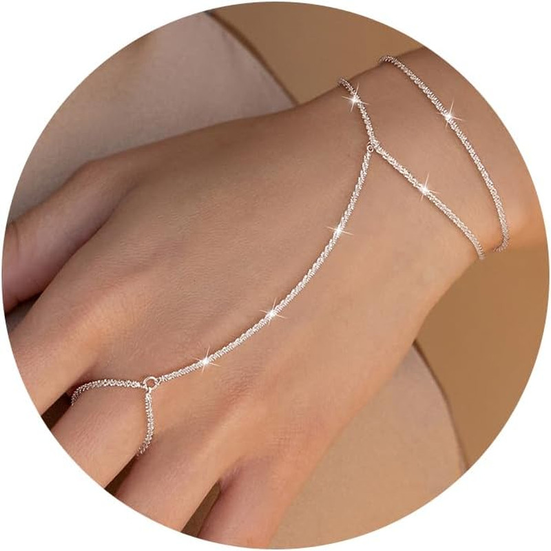 Dainty Ring Bracelet Hand Chain for Women - 14K Gold Plated/Sterling Silver Laye