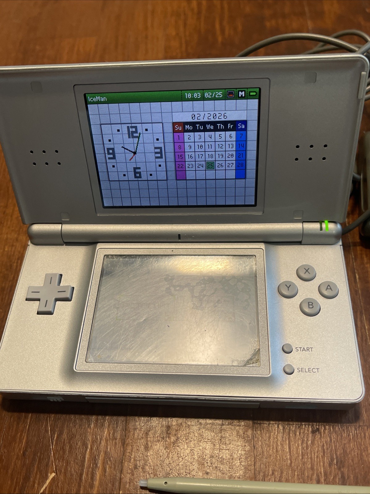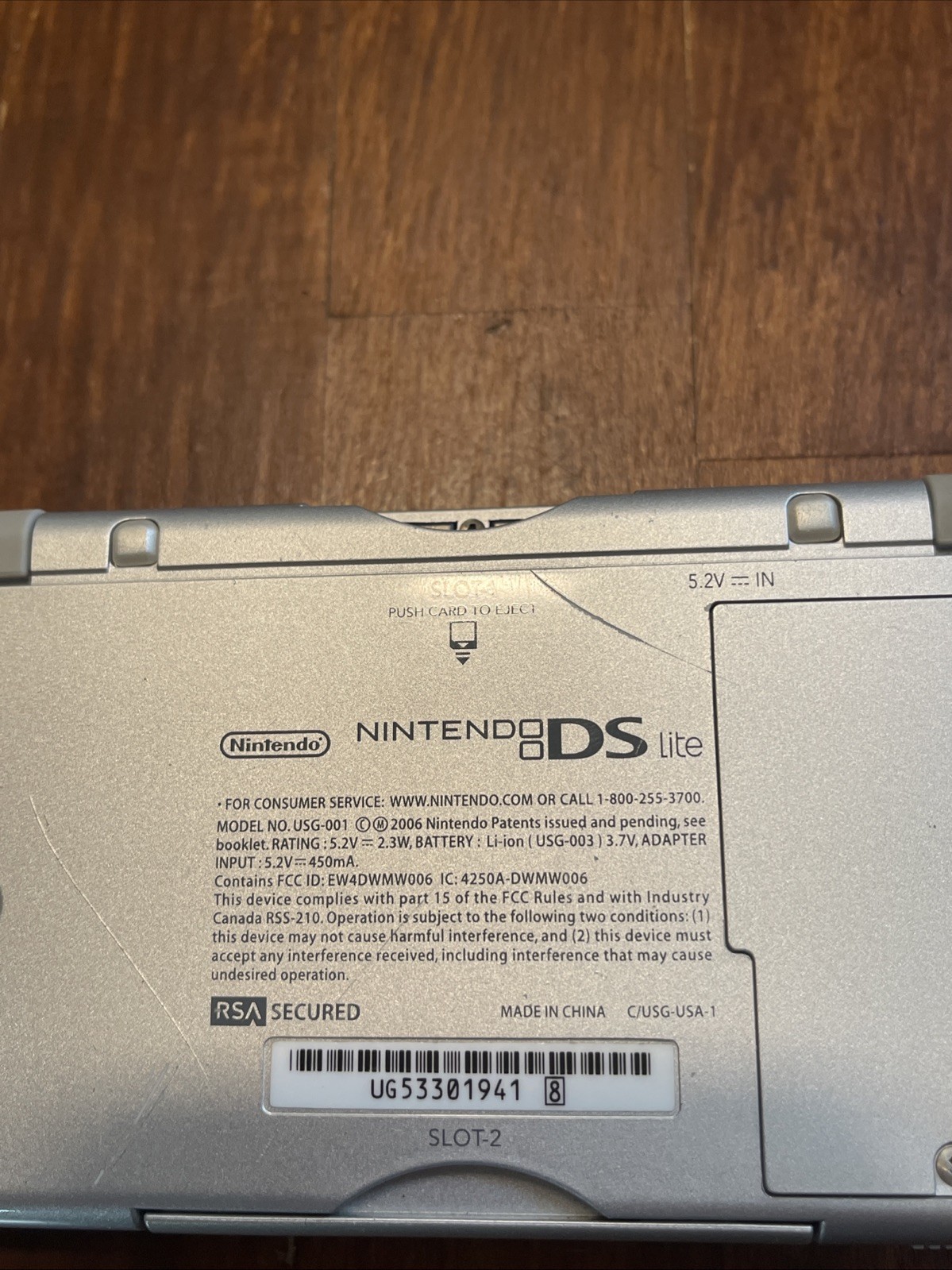 Nintendo DS Lite Metallic Silver With Charger Stylus Tested Working USG-003