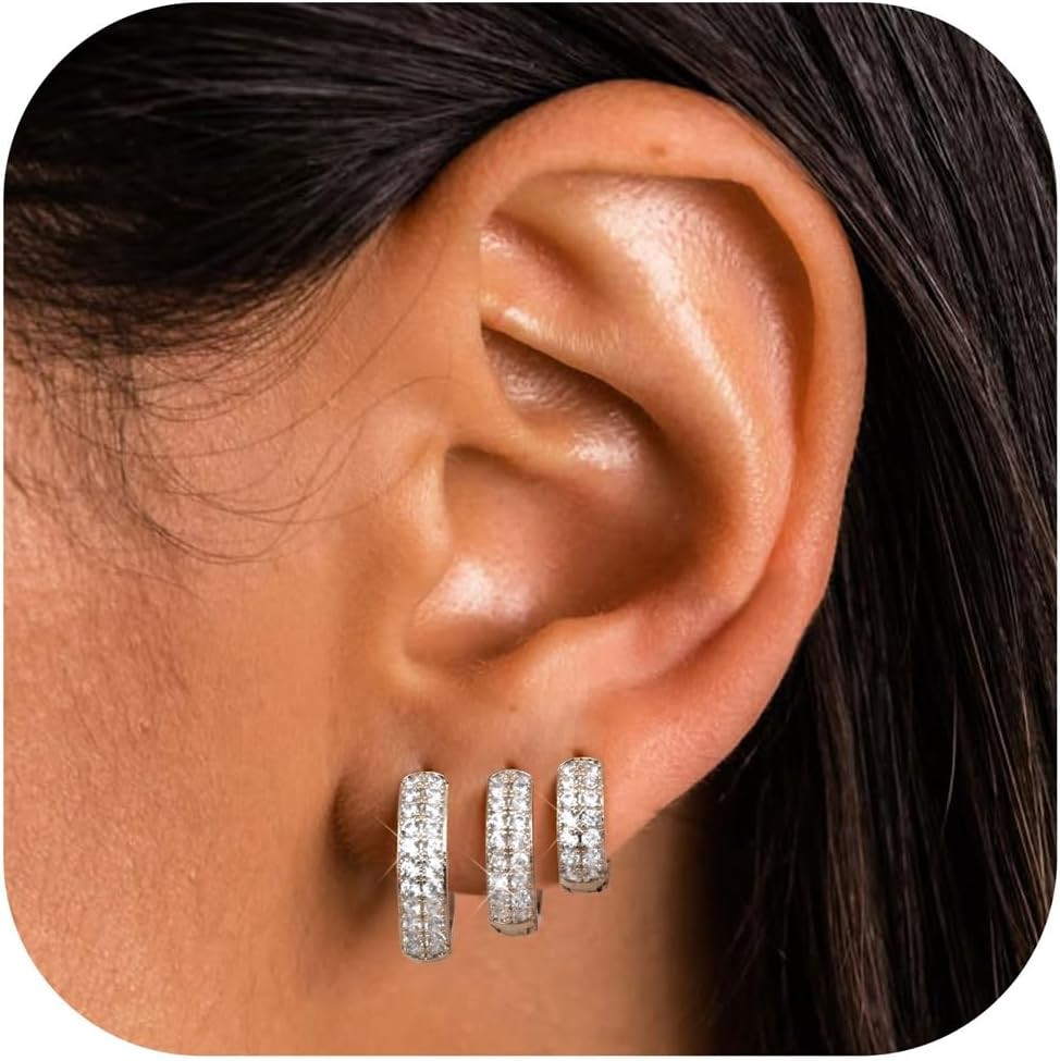 3 Pairs 14K Gold Plated Chunky Hoop Earrings for Women 925 Sterling Silver Post