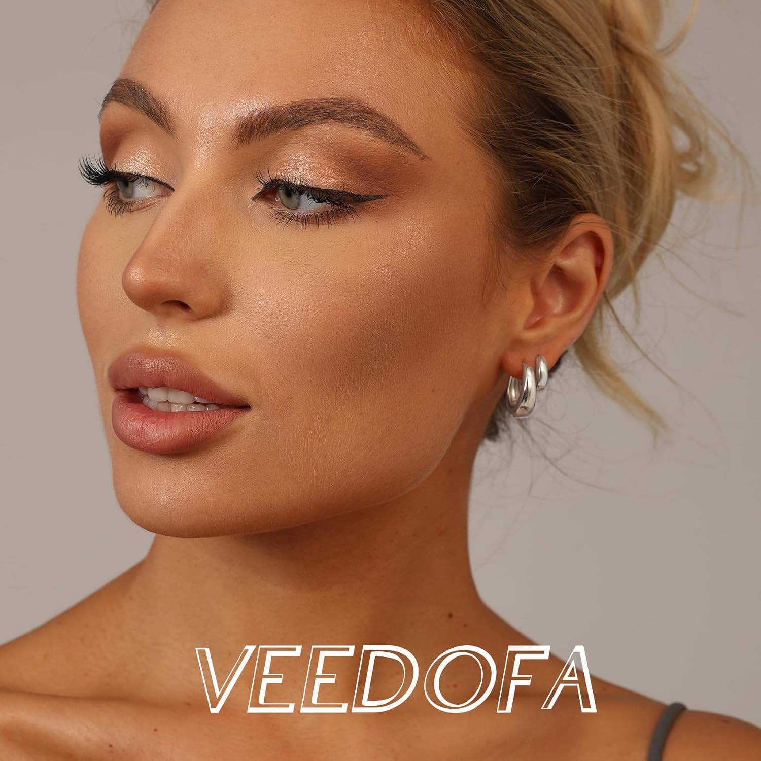 как выглядит Small Hoop Earrings Set for Women,Trendy 14K Gold Plated Sterling Silver Small C фото