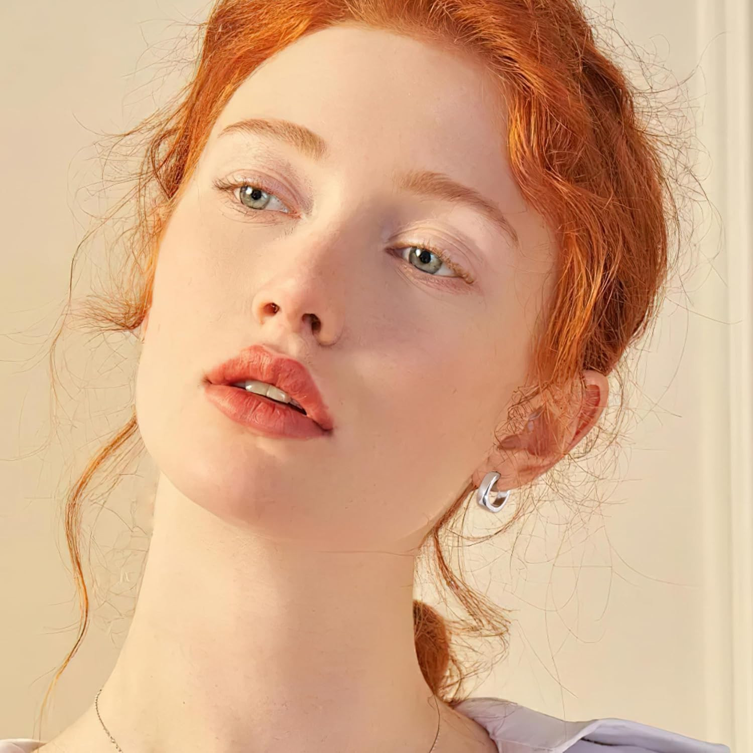 как выглядит 925 Sterling Silver Earrings Small Chunky Hoop Earrings for Women Trendy Huggie фото