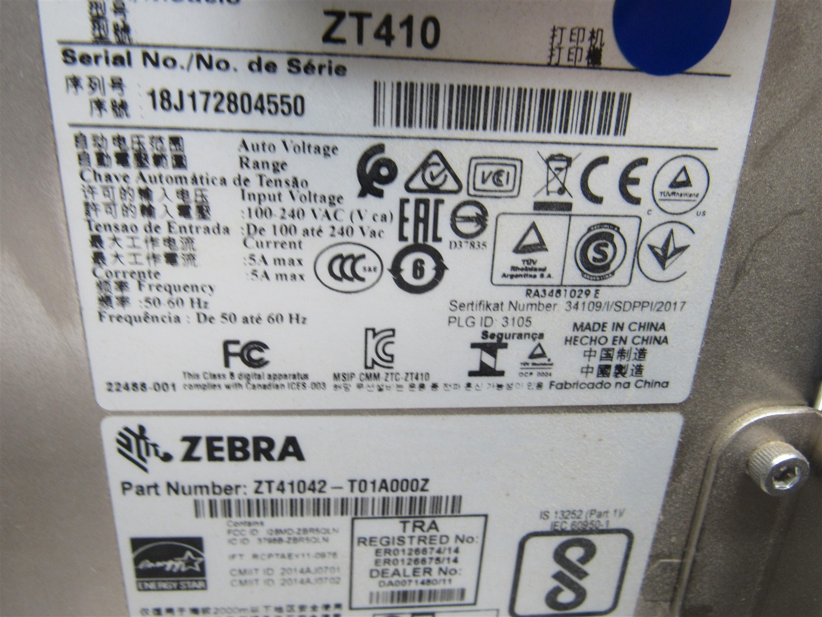 Zebra ZT410 Thermal Transfer USB Ethernet Barcode Label Printer ZT41042-T01A000Z