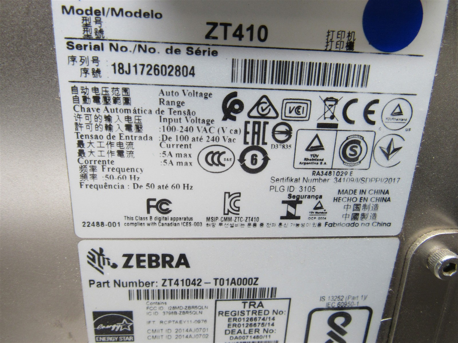 Zebra ZT410 Thermal Transfer USB Ethernet Barcode Label Printer ZT41042-T01A000Z