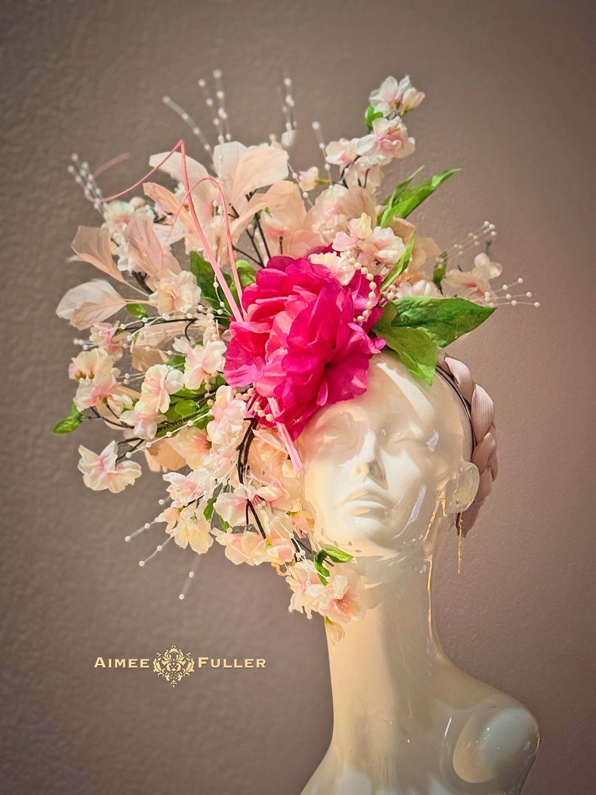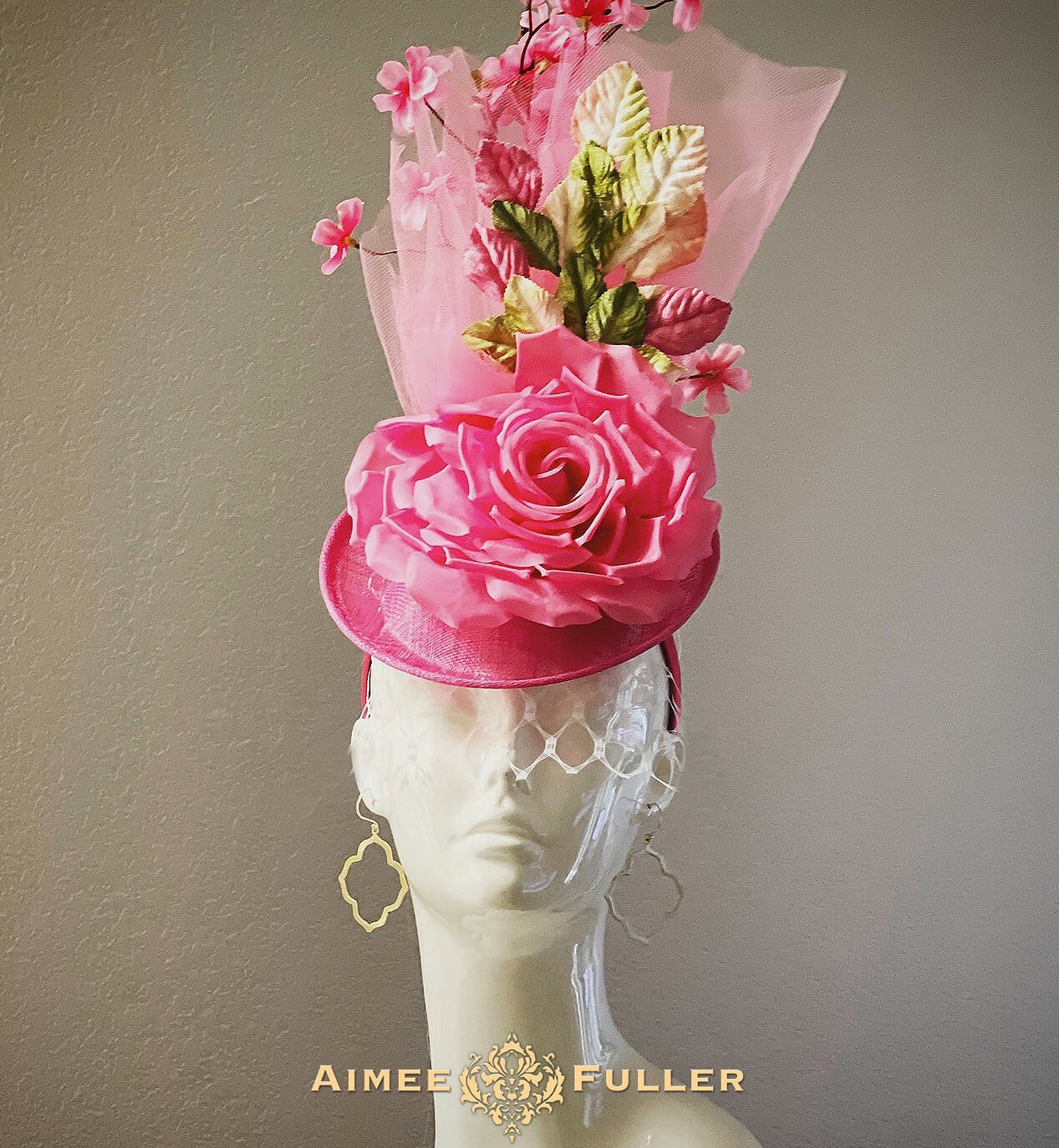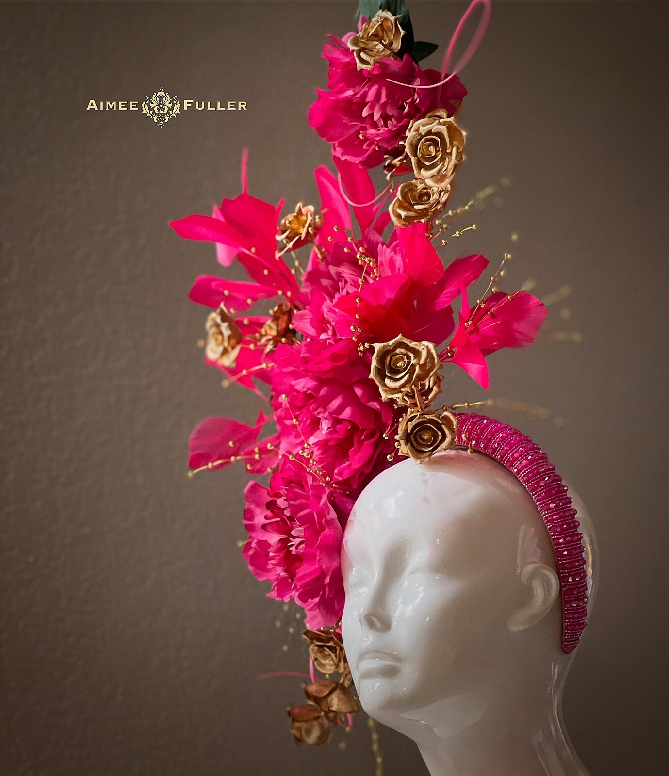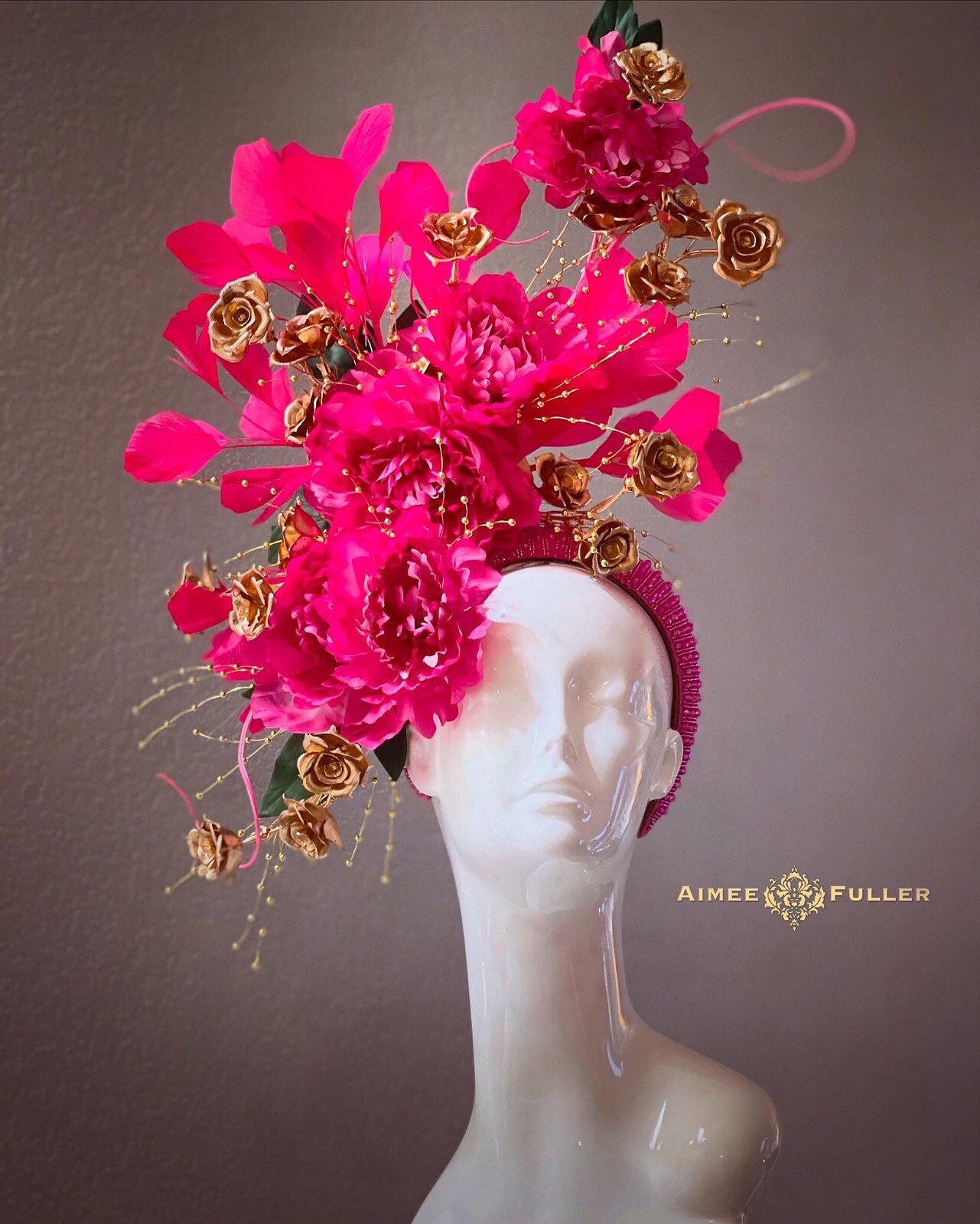 Kentucky Derby Hat Fascinator Fuchia Rose Hot Pink Green Gold Royal Ascot Hat