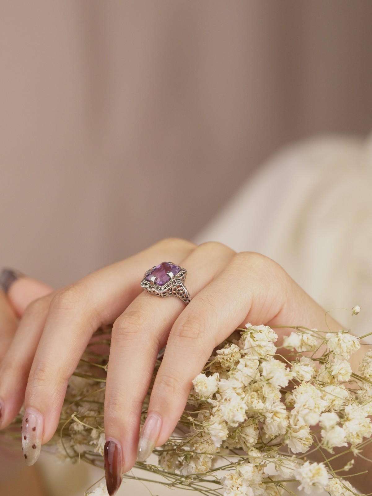 Silver925 Natural Amethyst Vintage Filigree Ring