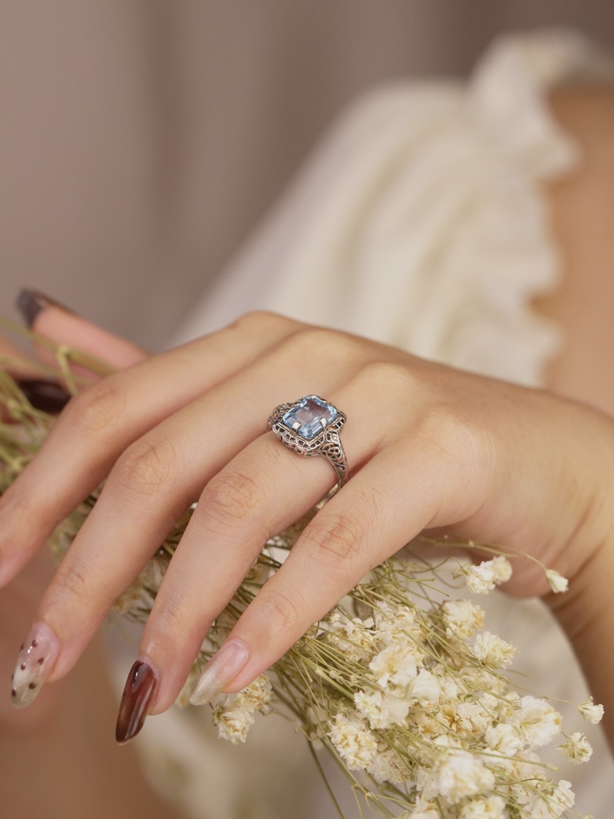Silver925 Natural Blue Topaz Vintage Filigree Ring