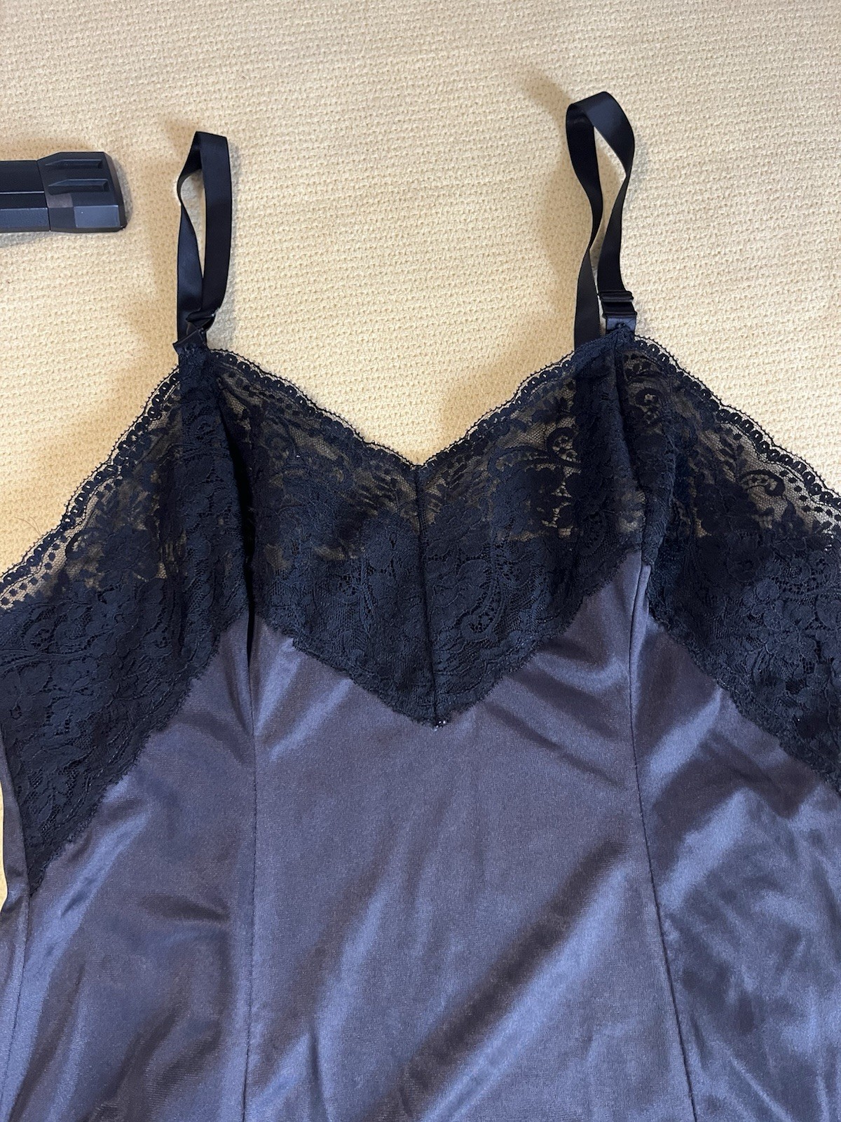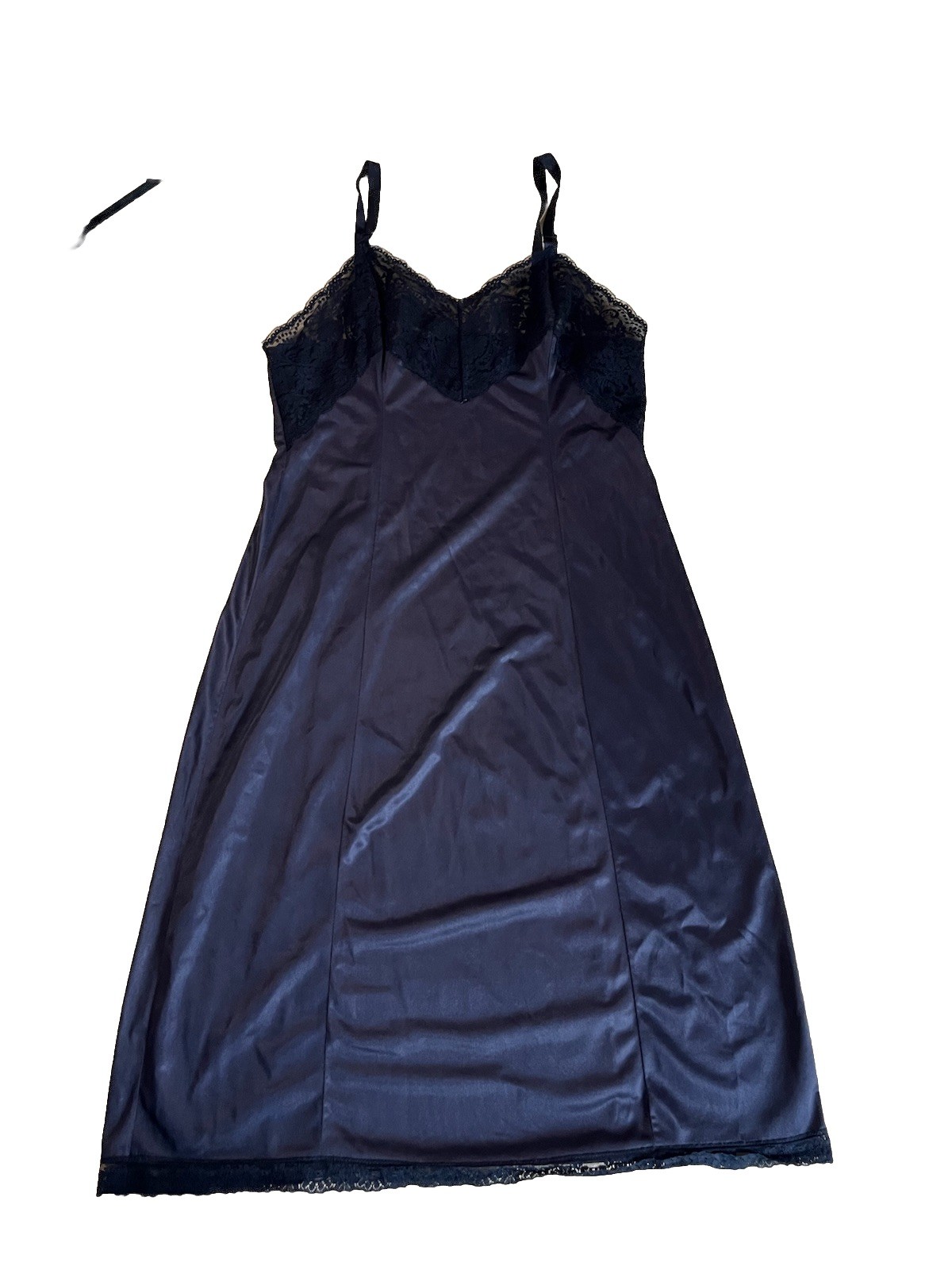 как выглядит Vintage Wonder Maid Nightgown Navy Black Satin Full Slip Lace SZ 38 Negligee фото