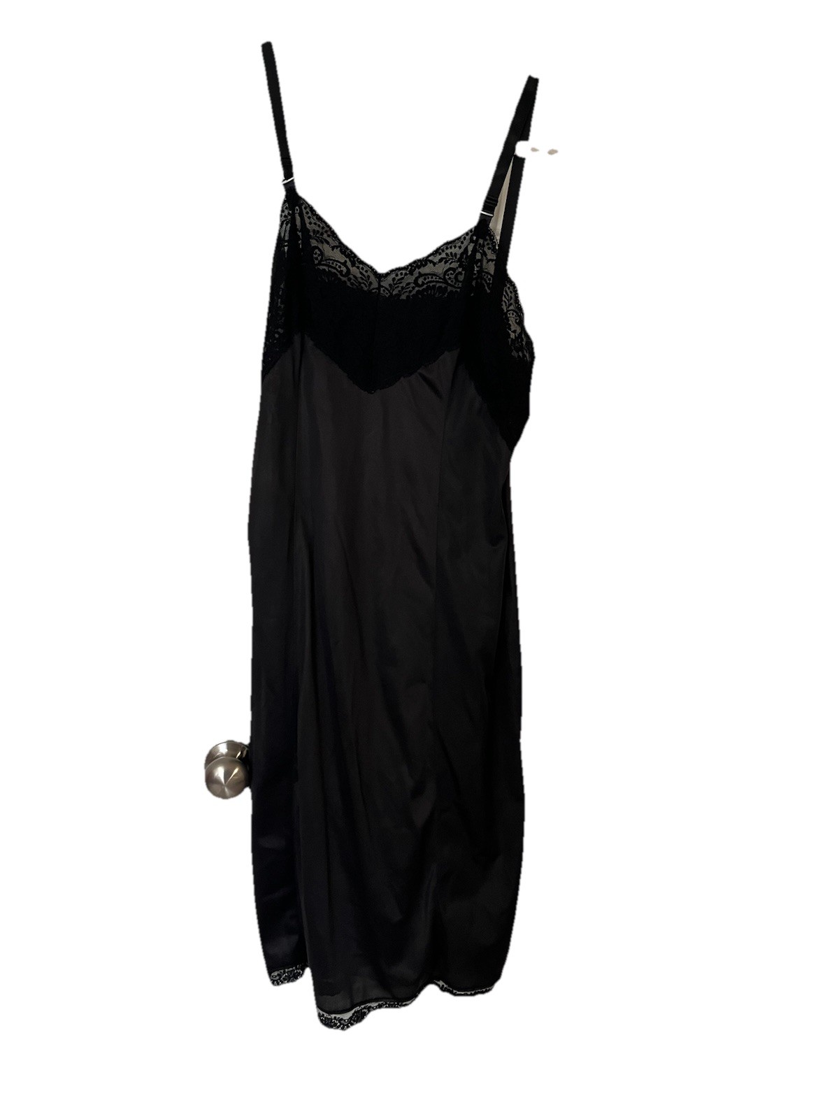 Vintage Wonder Maid Nightgown Navy Black Satin Full Slip Lace SZ 38 Negligee
