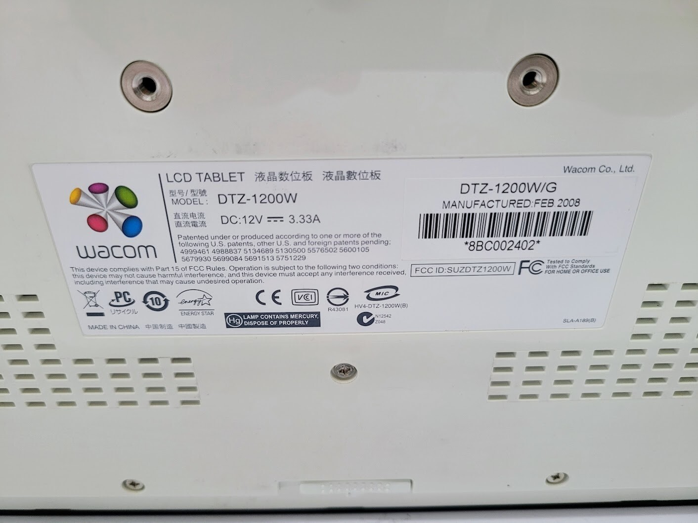 Wacom LCD Tablet Model:DTZ-1200W/G