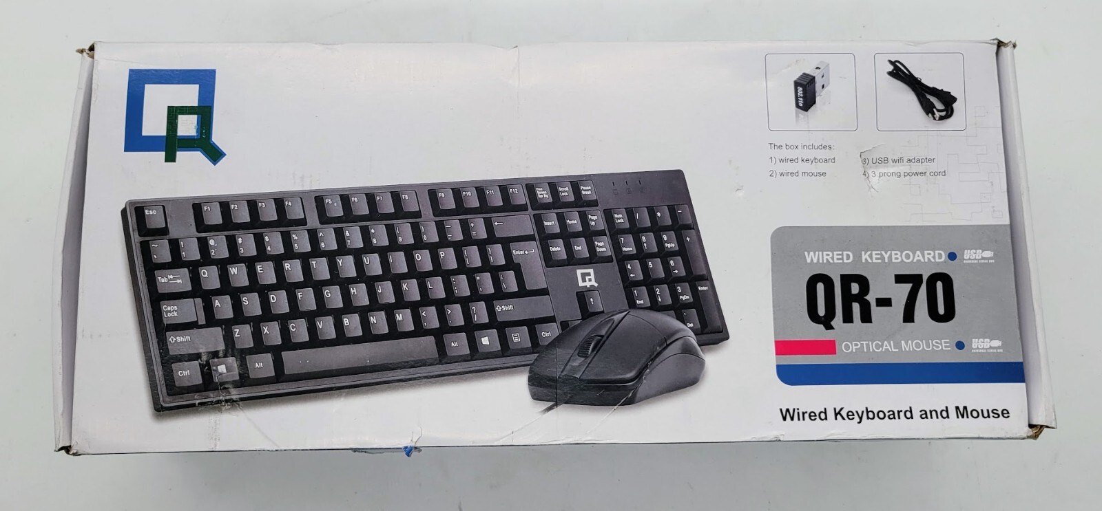 как выглядит LOT OF 3 QR-70 Wired Keyboard And Optical Mouse/ W WIFI ADABTER POWER CORD фото