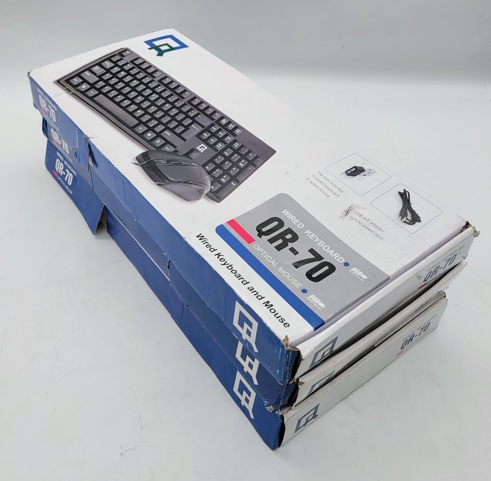LOT OF 3 QR-70 Wired Keyboard And Optical Mouse/ W WIFI ADABTER POWER CORD