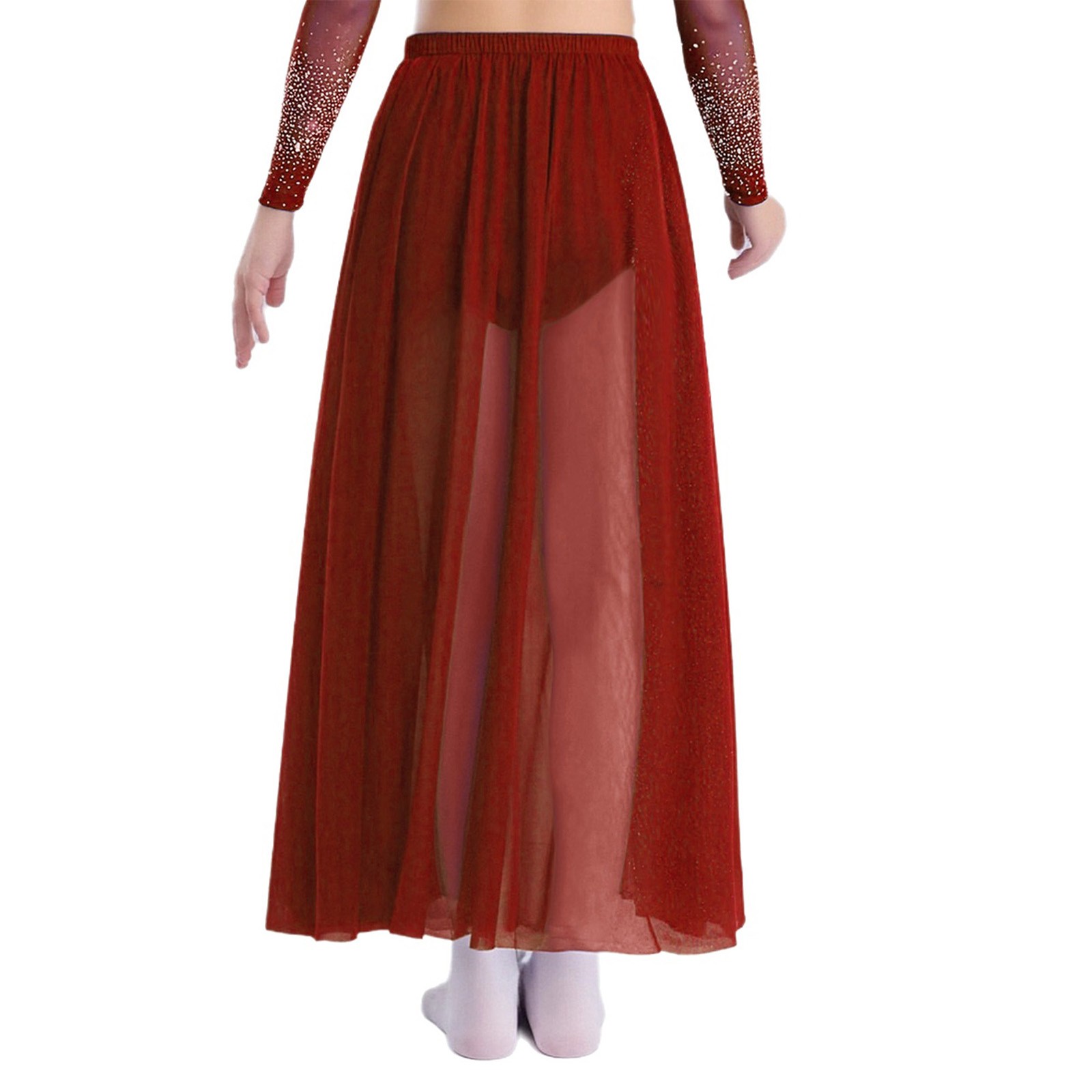 Kids Girls Maxi Flowy Dancewear Modern Skirt Ballet Practice Costume Ballroom