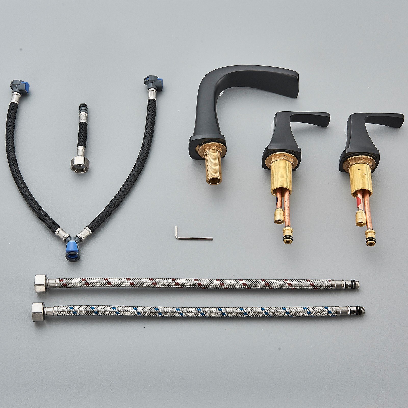 3 Hole Widespread Bathroom Sink Faucet Black 2-handle Vanity Basin Mixer w/Drain