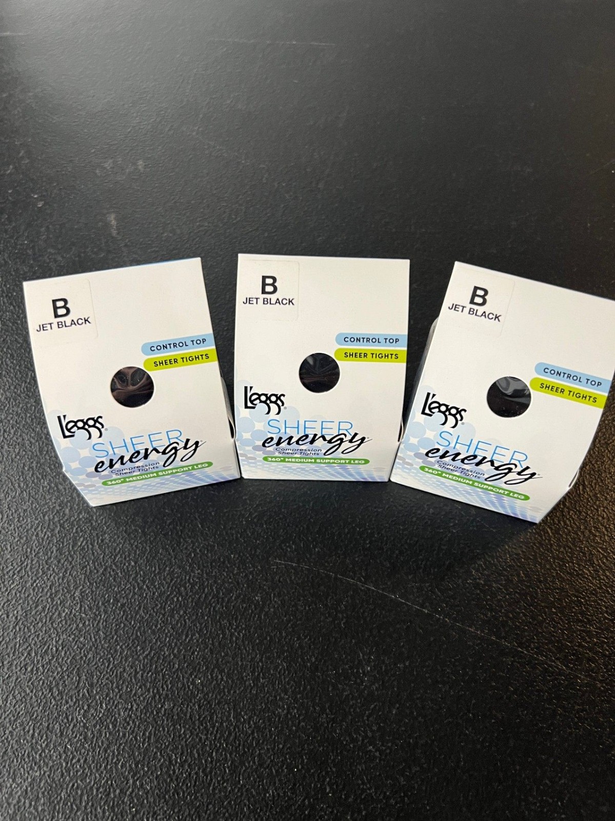 L'eggs Womens Sheer Energy Tights Pantyhose Lot of 4 Size B Medium Jet Black