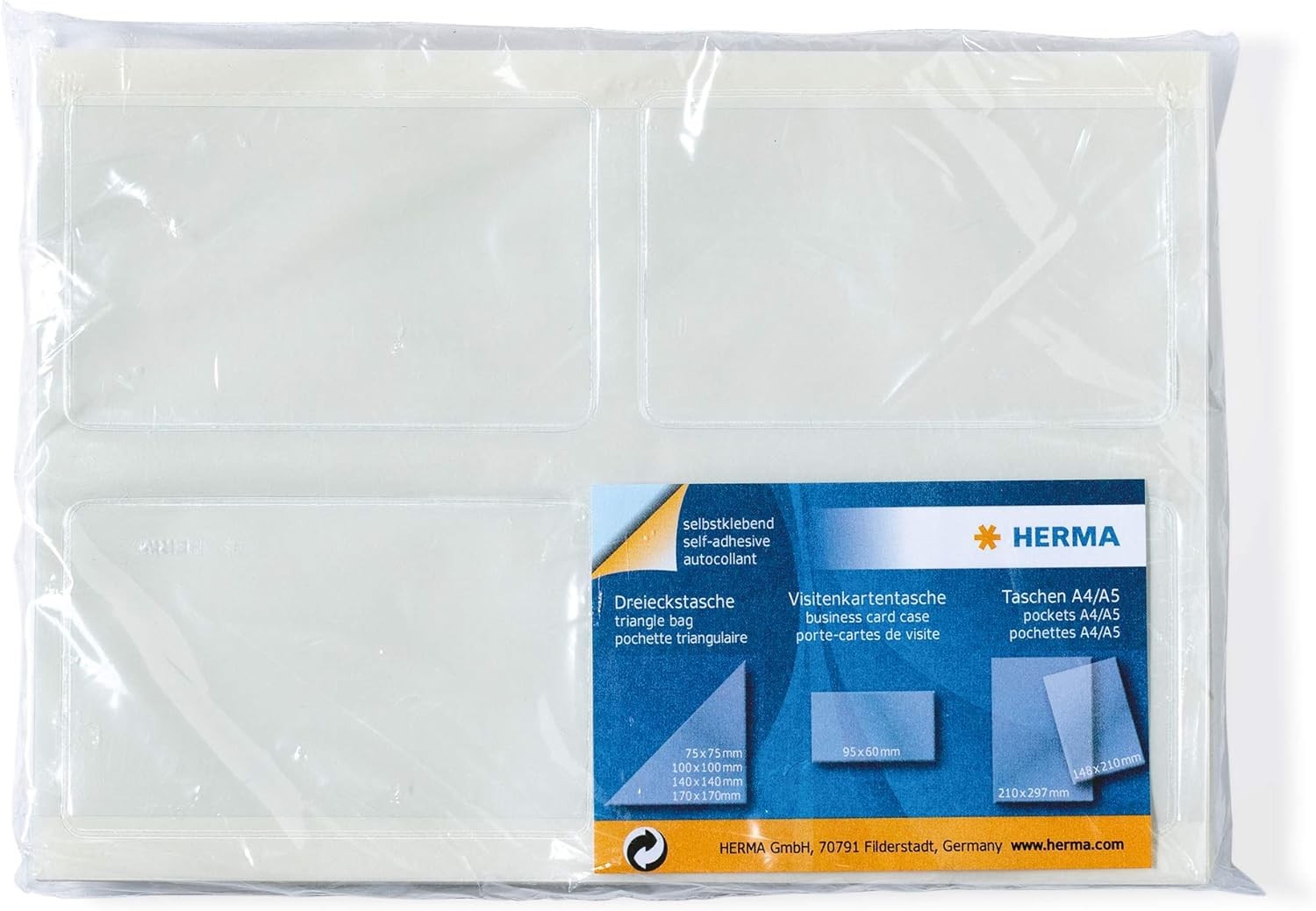 Title: HERMA 1422 Self-Adhesive Business Card Pockets, Pack of 100, 95 x