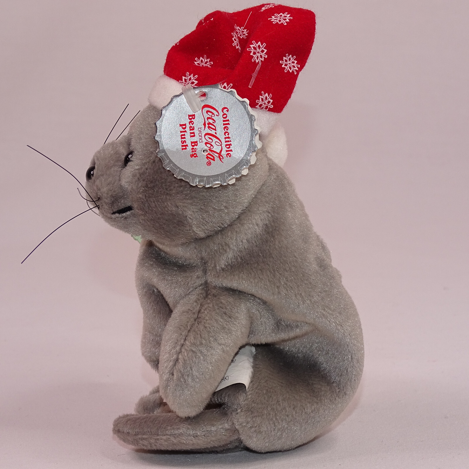 • Coca Cola Seal Plush With Santa Hat Coca Cola Bottle Tags 1997 Christmas Seal