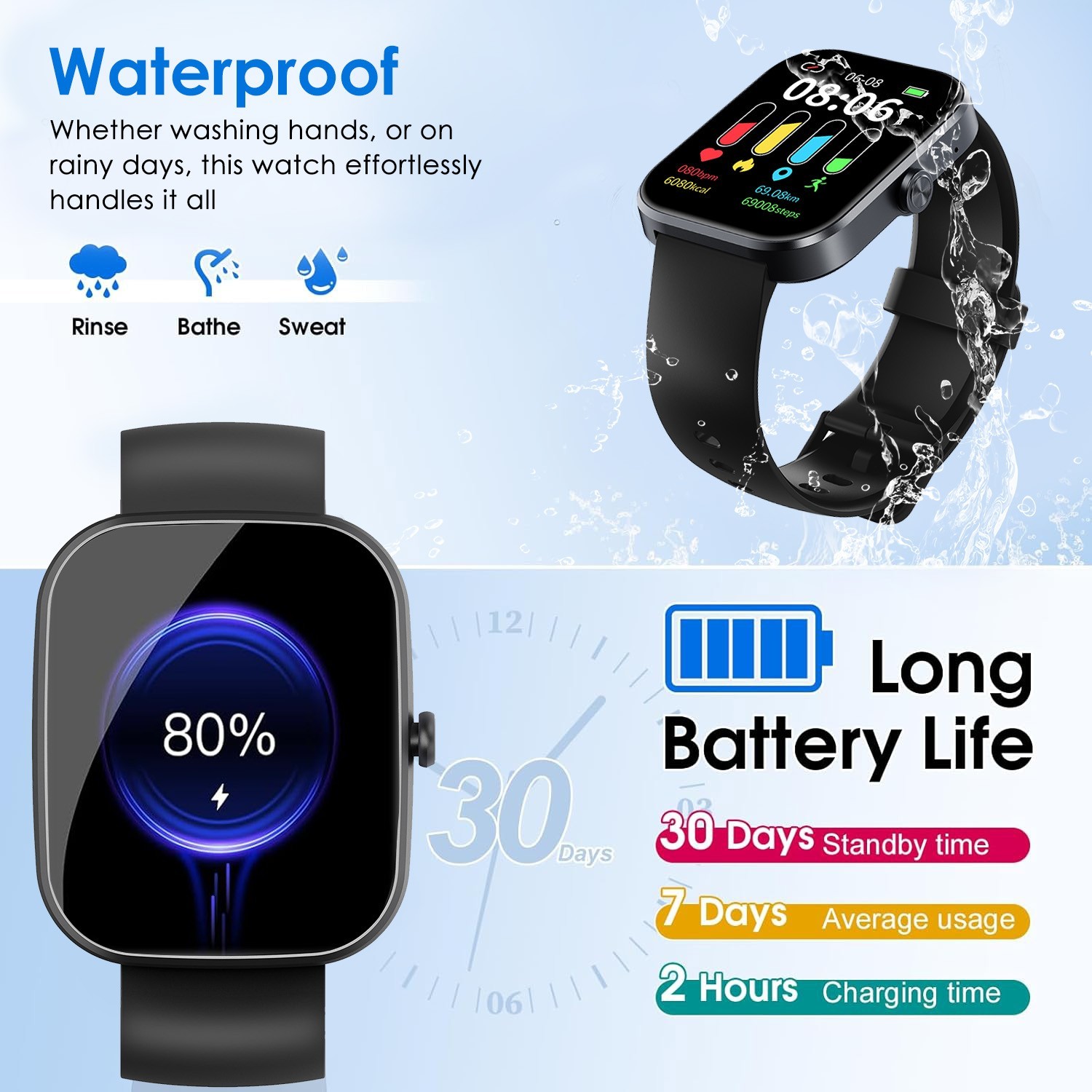 Smart Watch for Women Men, Smartwatch for iPhone Android Bluetooth Compatible