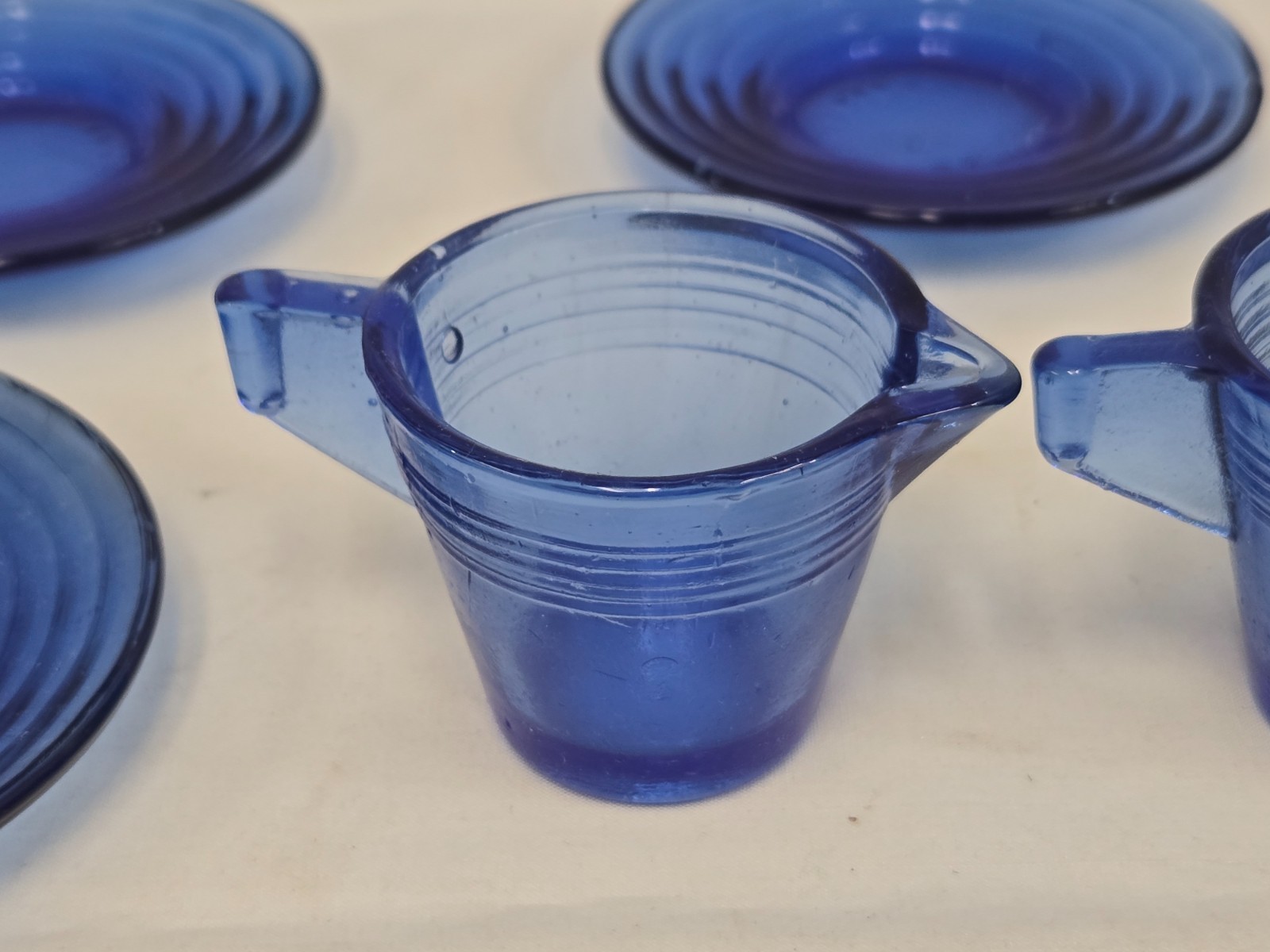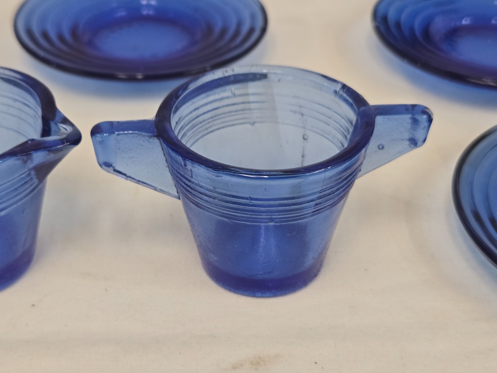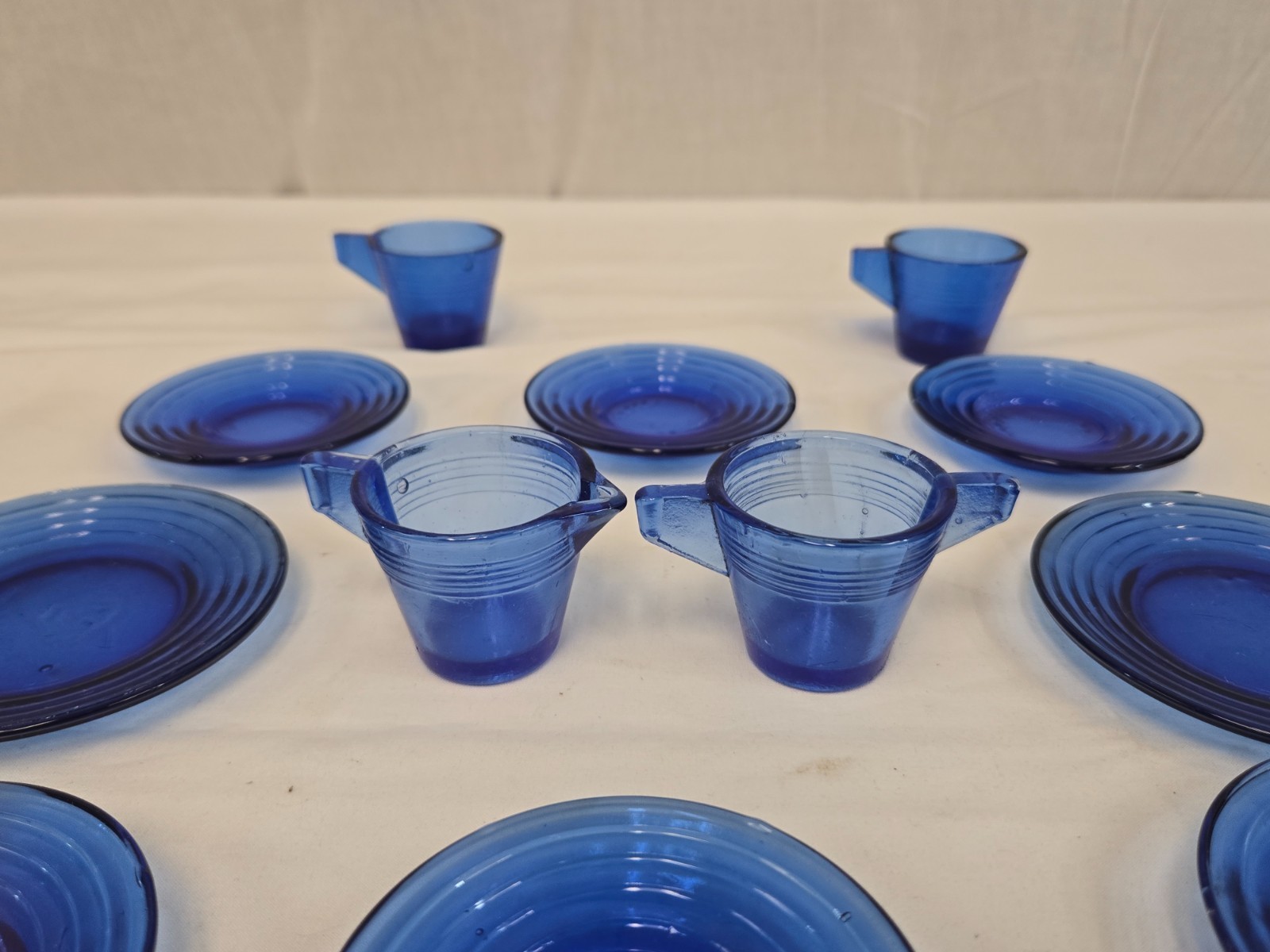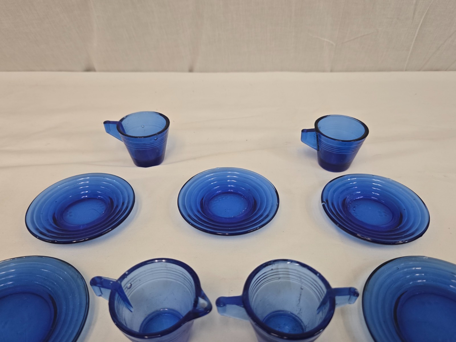 15 PCS Vintage Akro Agate Cobalt Blue Glass Childrens Tea Sets - Fluted Glass