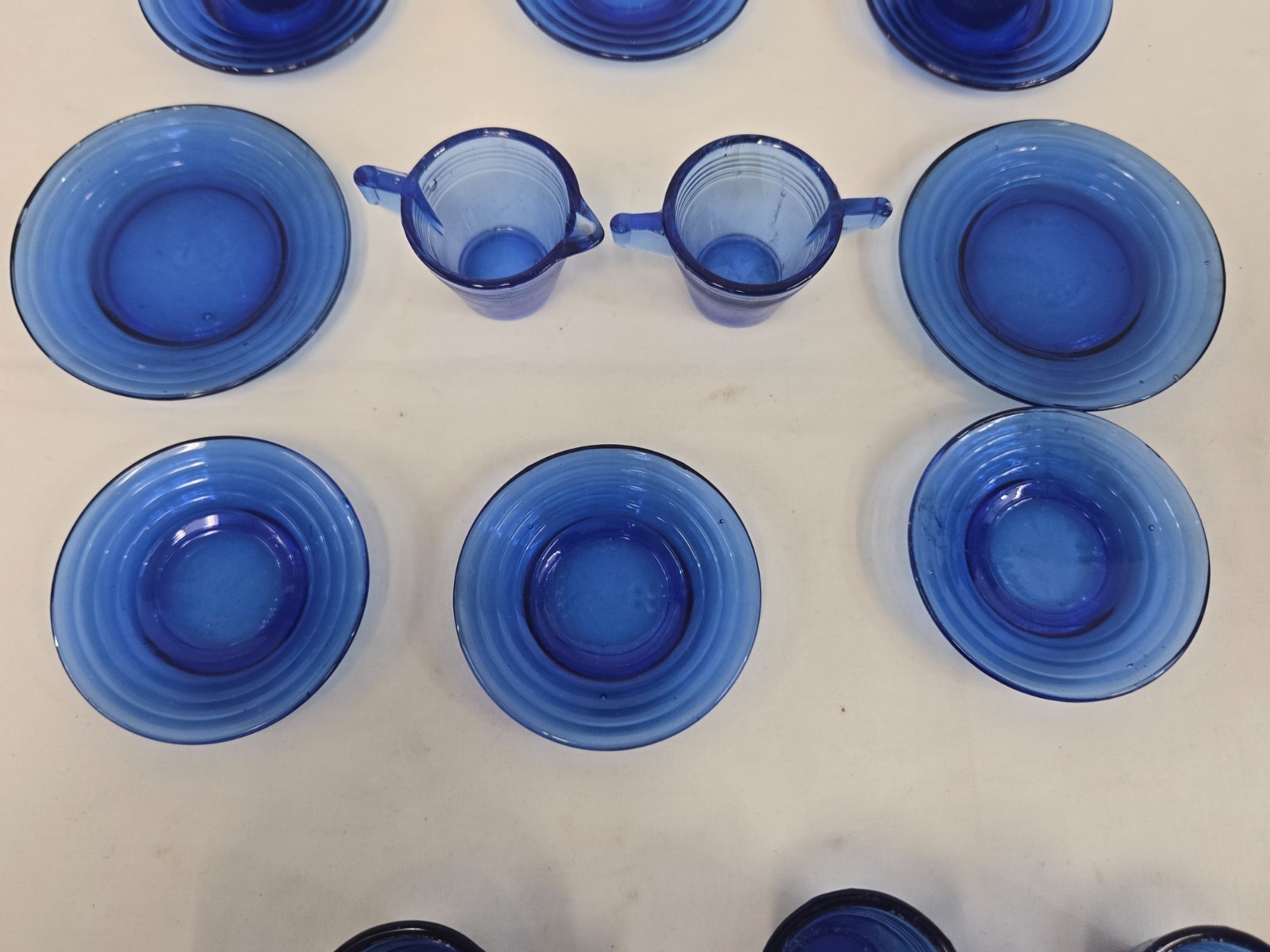 как выглядит 15 PCS Vintage Akro Agate Cobalt Blue Glass Childrens Tea Sets - Fluted Glass фото