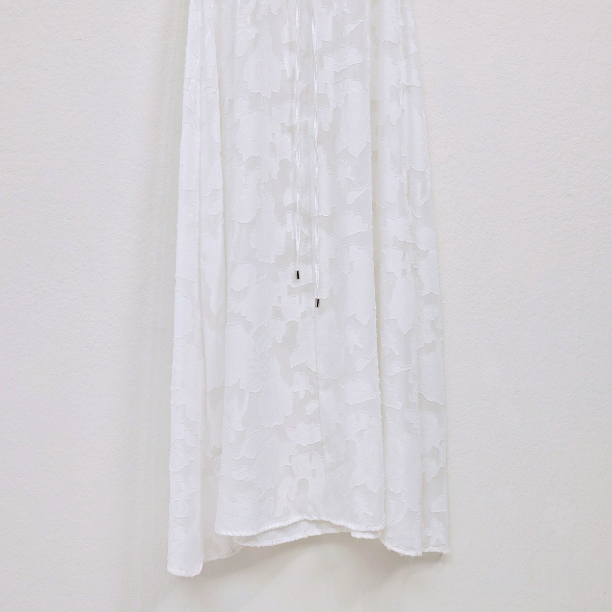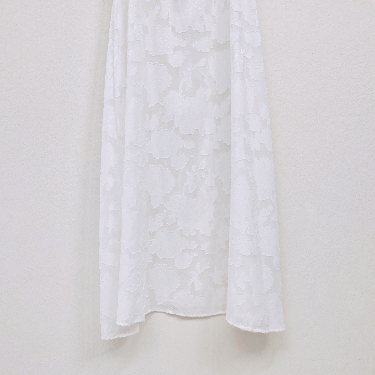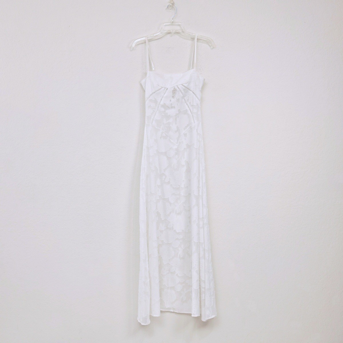 White Floral Burnout Satin Lace Up Back Slip Dress Coquette Midi Event Bridal S