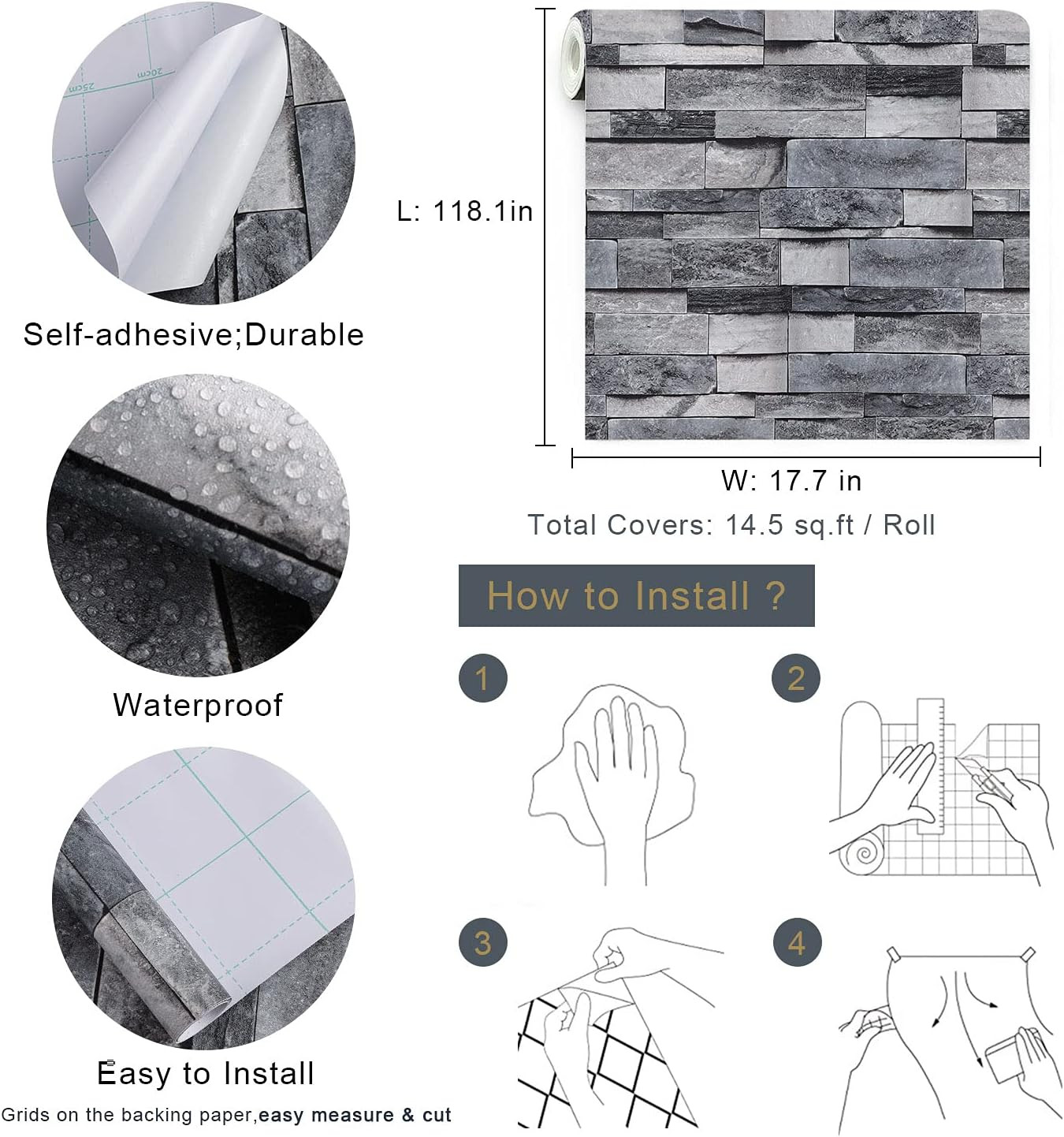 Grey Brick Wallpaper Peel and Stick Stone Wall Paper 17.7 X 118 Self Adhesive Re