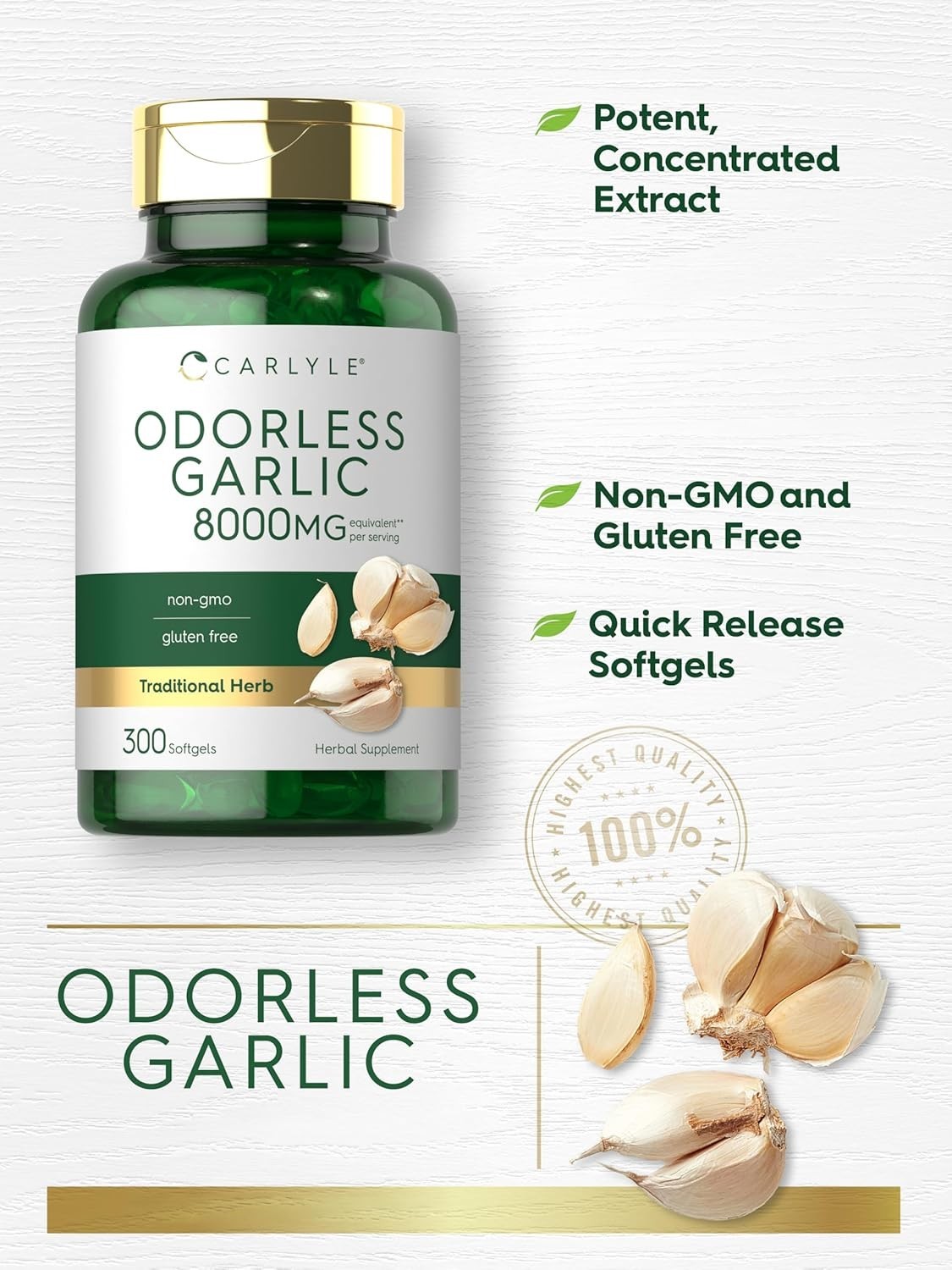 Odorless Garlic Softgels 300 Count - Powerful High Potency Nutritional Support