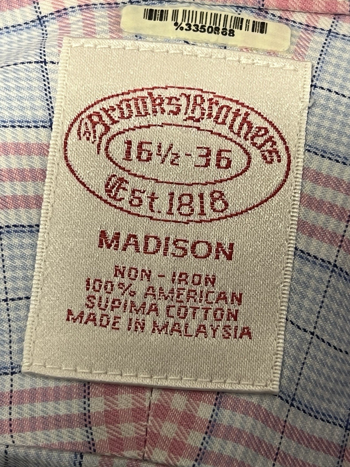 Brooks Brothers Madison Mens Dress Shirt 16 1/2 36 Blue Pink Plaid Cotton L/S C4
