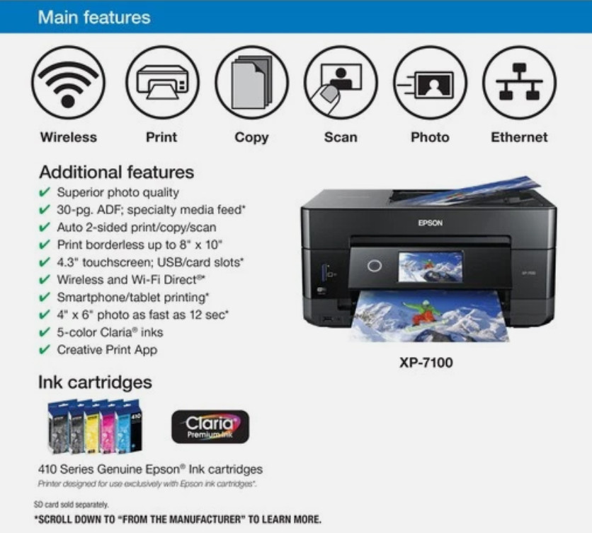 как выглядит Epson Expression Premium XP-7100 Wireless Color Inkjet Printer, All-In-One - NEW фото