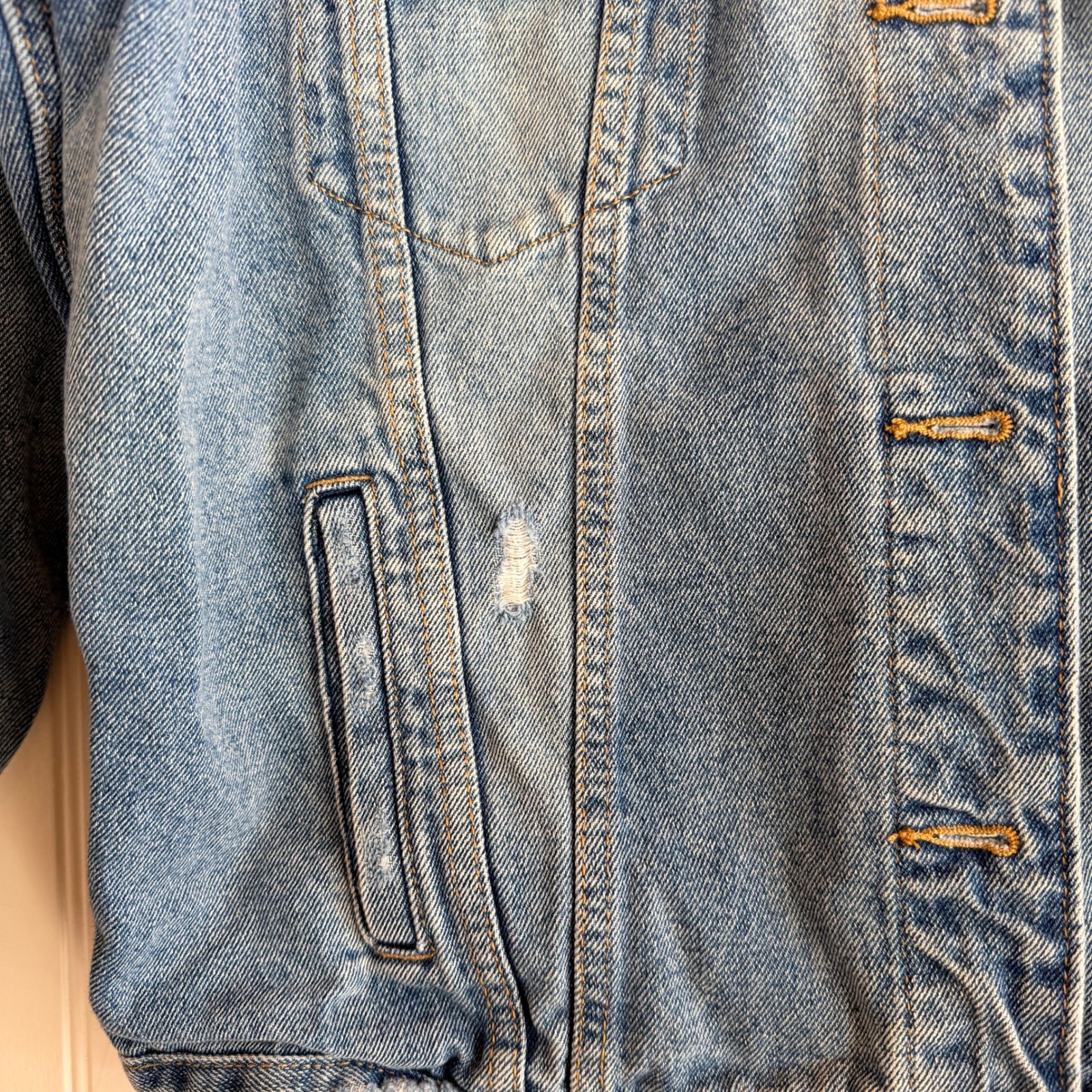 как выглядит Wild Fable Womens Blue Denim Jacket Distressed Size S фото