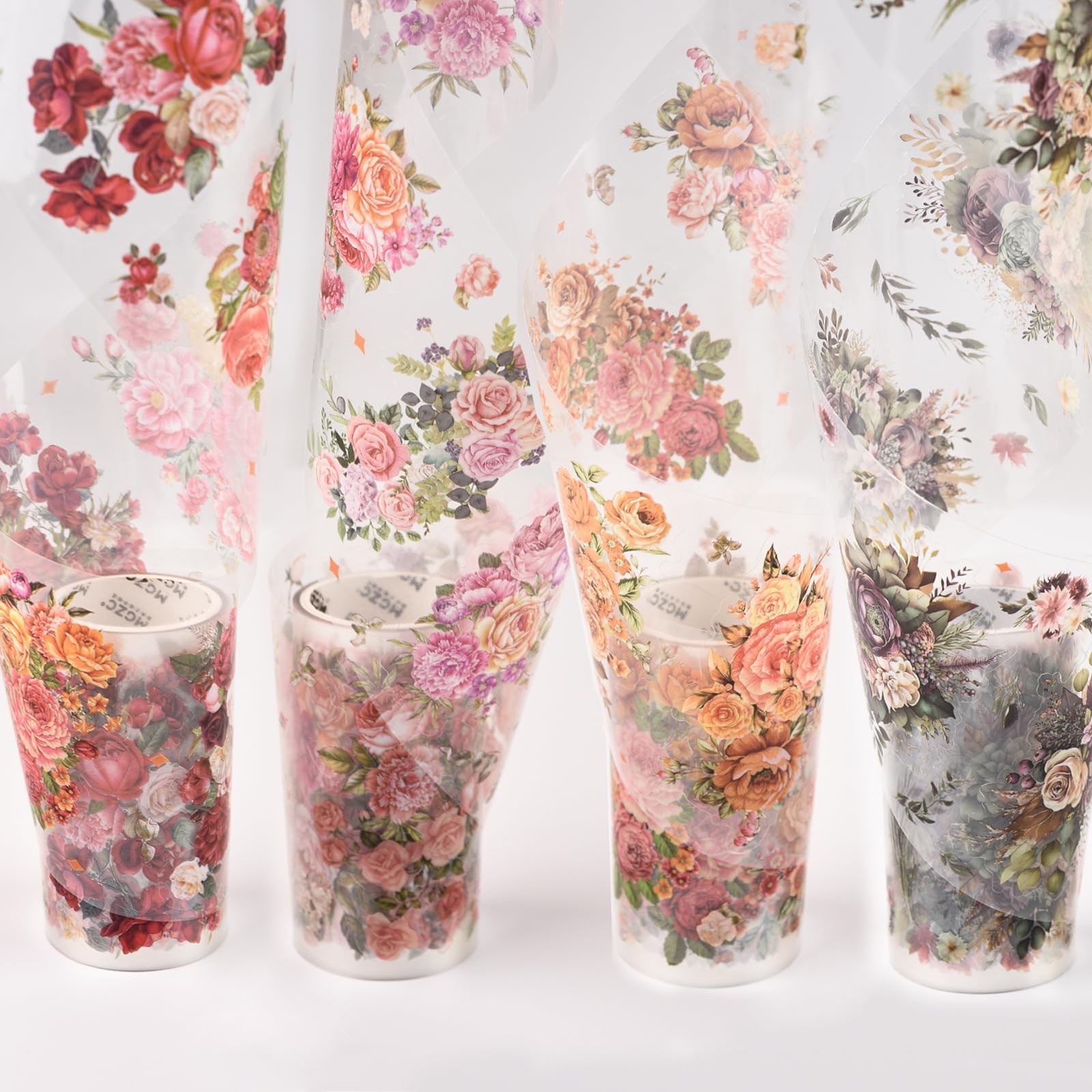 URROMA Flower Scrapbooking Tape Set, 4 Rolls PET Colorful Tapes Floral Washi Tap