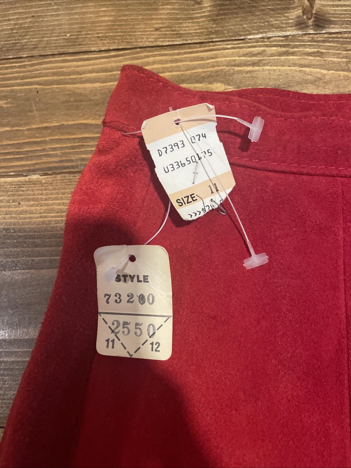 Vtg NWT USA Made Phoenix Suede Leather Skirt Red Sz 11