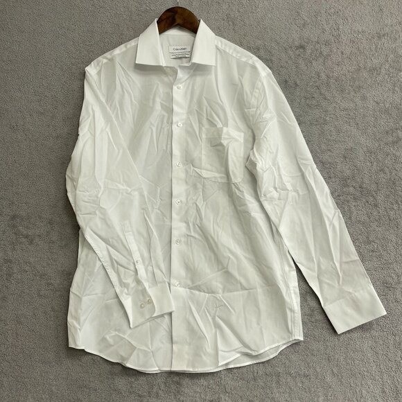 NWOT Calvin Klein Men's M White Long Sleeve Button Dress Dress Shirt