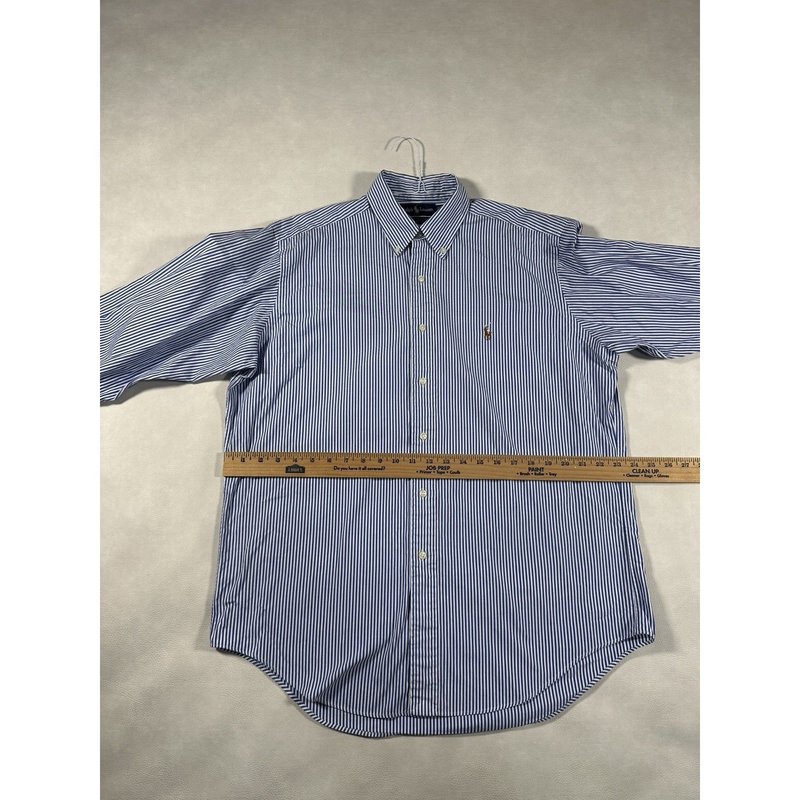 как выглядит Ralph Lauren Yarmouth Mens 16/34 Blue White Stripe Flesh Pony Oxford Shirt фото