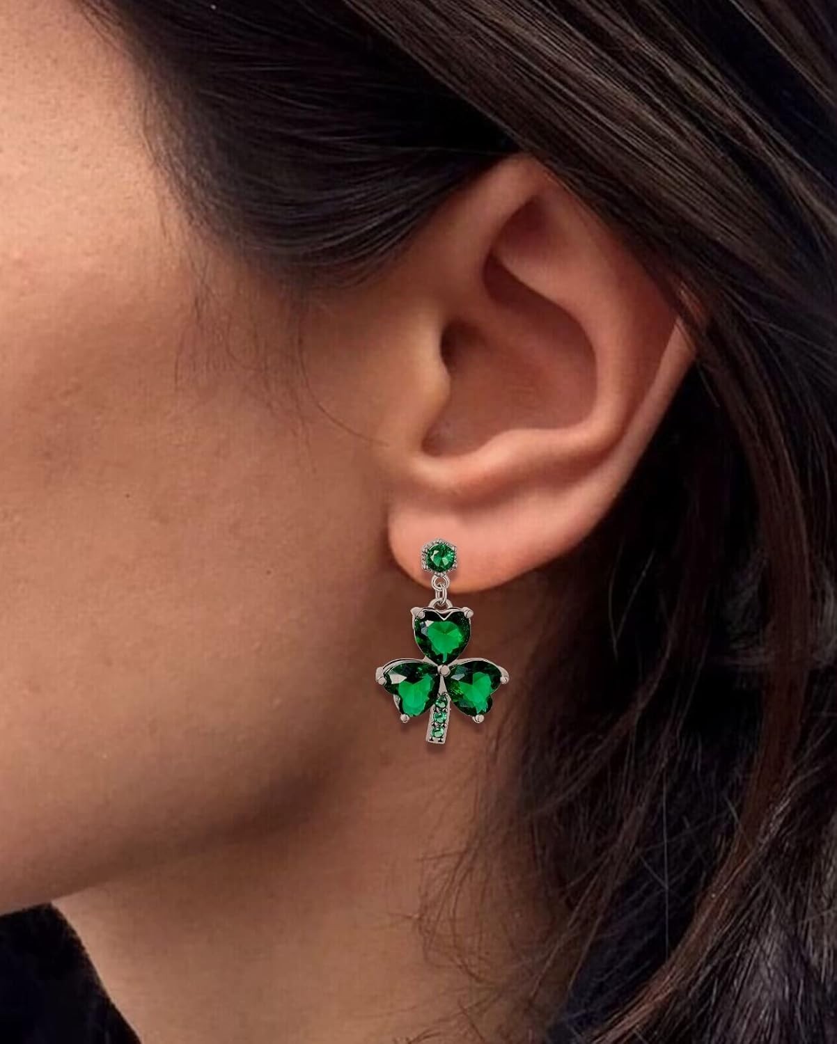 как выглядит Dainty Shamrock Stud Earrings with Green Rhinestones - Lucky St. Patrick